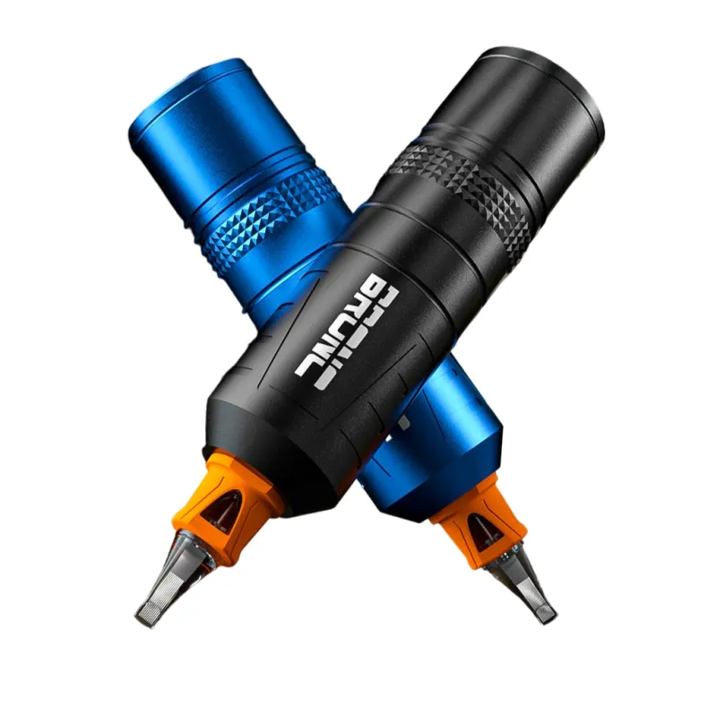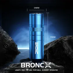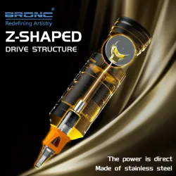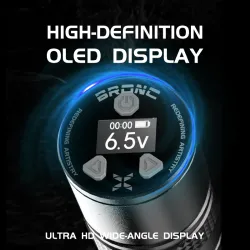 Компактната безжична машина BRONC X от Hummingbird Tattoo, която се побира във всяка ръка, е дълга само 111 мм. Тя има мощен мотор и новоподобрен главен контролен чип от серията X. BRONC X с LED дисплей показва настройката на волтажа с точност до 0,1 V, нивото на батерията, работното време и избрания режим. Вградената батерия с капацитет 1620 mAh осигурява 4 до 7 часа работа с едно зареждане. Мощният швейцарски DC мотор 4,5W без усилие задвижва до 45 игли, като същевременно намалява увреждането на кожата.
