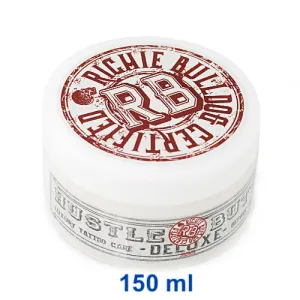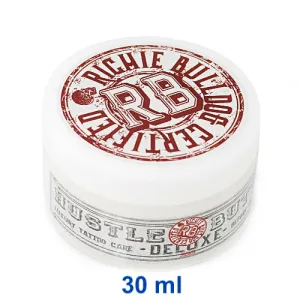 Hustle Butter DLX е 100% натурален и веган заместител на всички продукти на основата на вазелин. Това е революционно масло, подходящо за подготовка на кожата преди татуиране, смазване по време на татуиране и заздравяване на нова татуировка. Съдържа манго, кокос, папая и други естествени съставки, които дават на Hustle Butter няколко предимства: