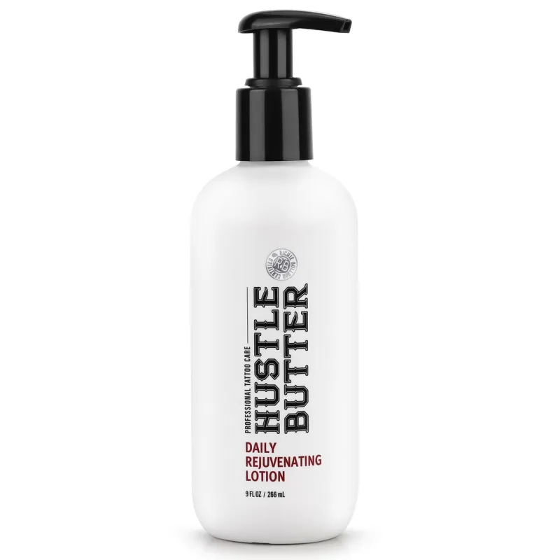 DAILY LOTION от HUSTLE BUTTER е лосион за тяло с хидратиращ и подмладяващ ефект, подходящ за ежедневно татуиране и грижа за цялото тяло. Благодарение на съдържанието на масло от ший, алое и масло от жожоба, ще остави кожата ви хидратирана, мека и копринено гладка. Марката HUSTLE BUTTER има характерен приятен тропически аромат. Не използвайте върху пресни татуировки!