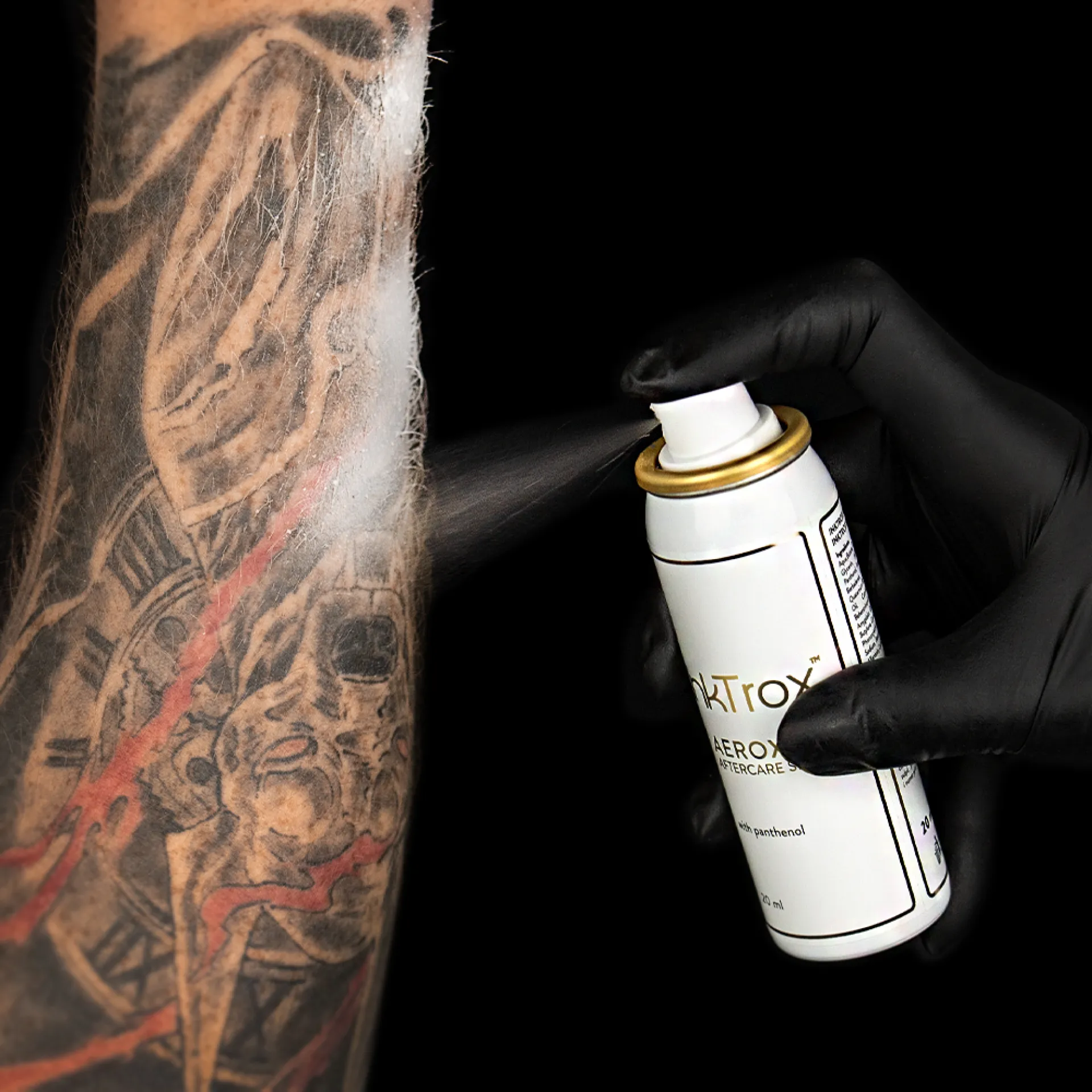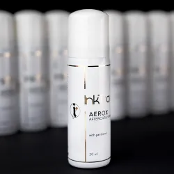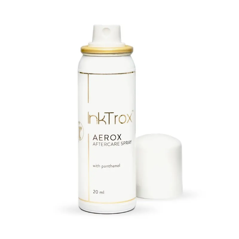 Спрей за татуировки Inktrox Aerox е успокояващ крем под формата на спрей, който ще запази трайността и качеството на вашата татуировка за по-дълго време. Благодарение на пантенола, който съдържа, облекчава болката, ефективно регенерира и се грижи за татуираната кожа. Освен всичко друго, съдържа глицерин, сок от алое вера, омекотител, извлечен от захарна тръстика, масло от авокадо, масло от сладък бадем и слънчогледово масло, които подхранват и се грижат за раздразнена кожа след татуировка.