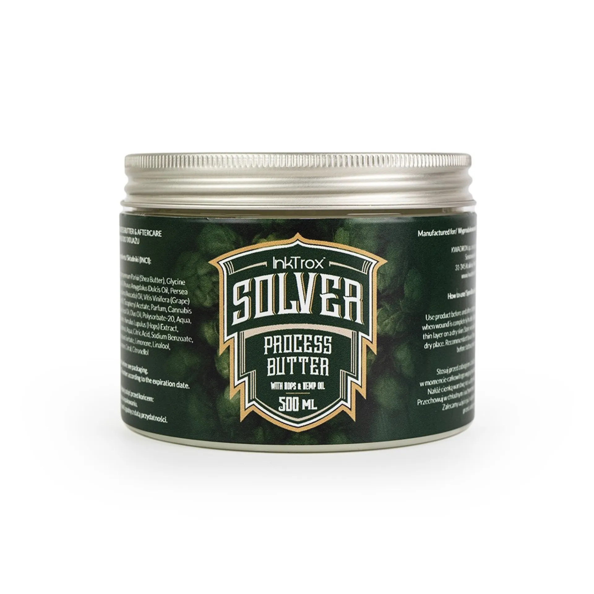 Благодарение на съдържанието на масло от ший, InkTrox Solver има и регенериращ, изглаждащ и омазняващ ефект. Дълбоко хидратира кожата, правейки я по-еластична. Предотвратява раздразненията и значително ускорява процеса на заздравяване на кожата. Идеална е защита срещу неблагоприятни външни условия (слана, вятър, слънце (UV)) - също така е перфектна за заздравяване на нова татуировка.