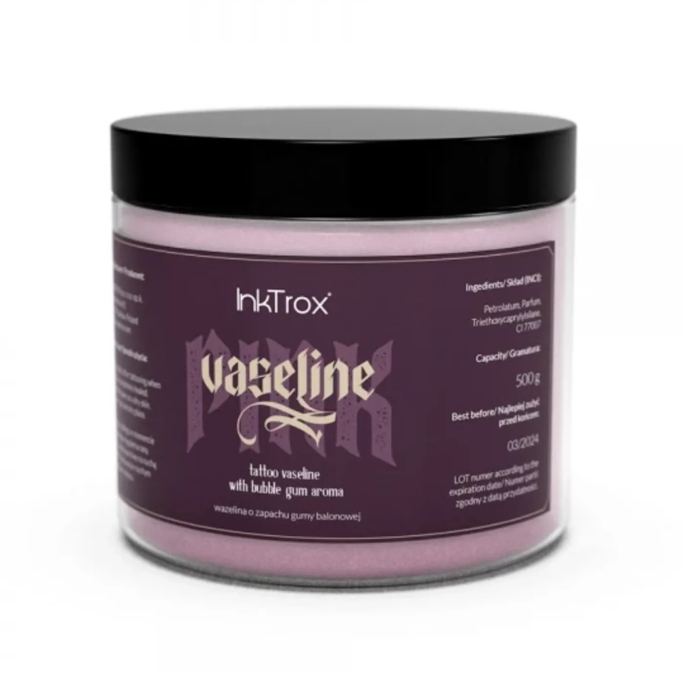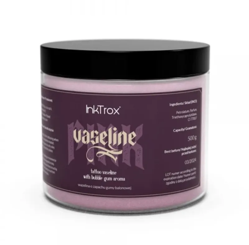 Специализиран розов козметичен вазелин с аромат на дъвка, който ще изпълни цялото студио с аромат. Много ефективен и безопасен продукт за всички типове кожа. Това улеснява процедурата по татуиране и е чудесн за ежедневна грижа на кожата. Предлага се в опаковки от 500 г.