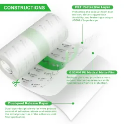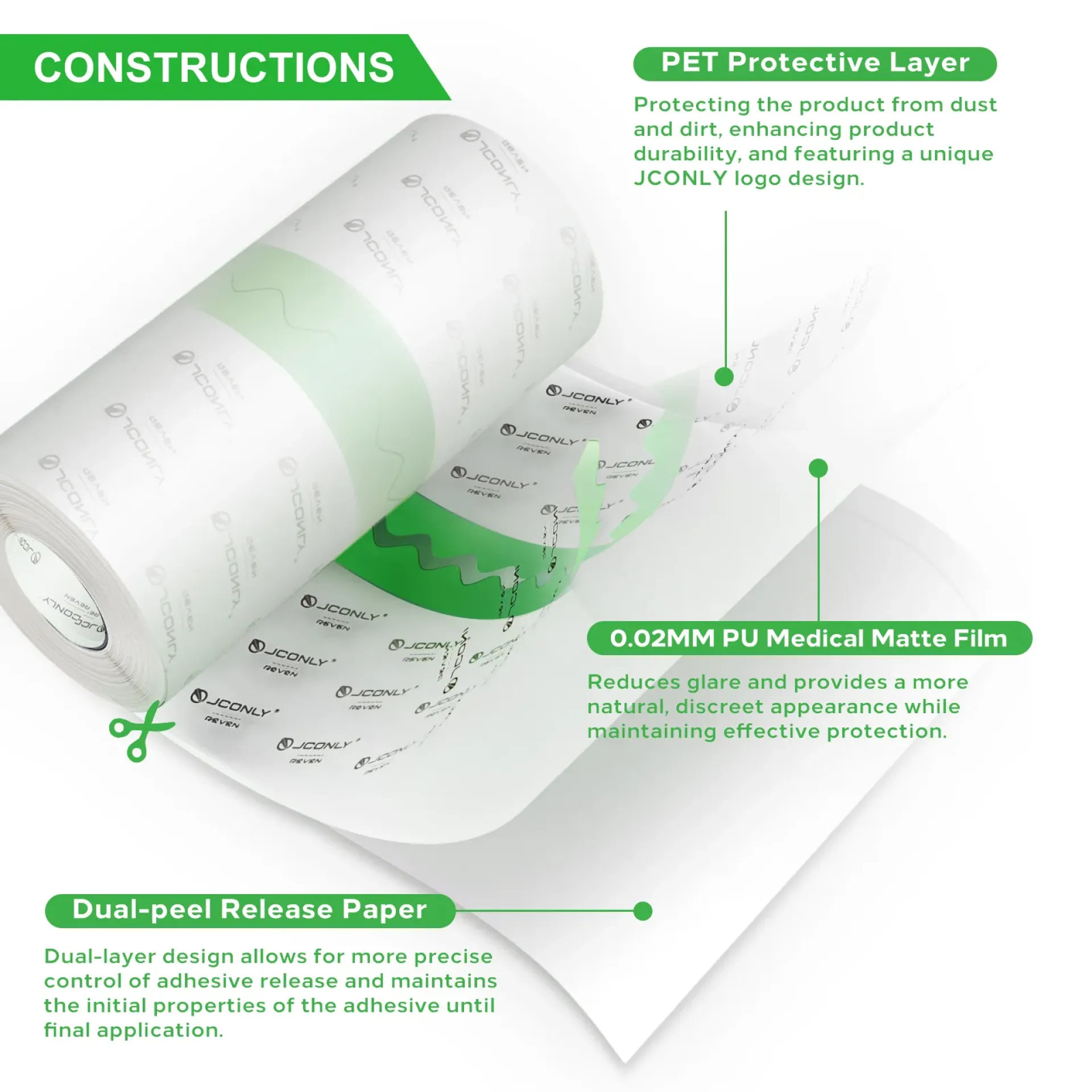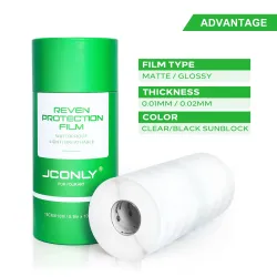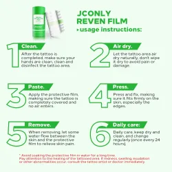 Защитното фолио за татуировки от марката JCONLY е предназначено за защита и заздравяване на прясно татуирана кожа. Има матова повърхност и завършек без латекс, което го прави почти невидимо върху кожата. С дебелина от само 0,02 мм, фолиото осигурява максимална пропускливост и гъвкавост. Освен това е водоустойчиво, намалява образуването на струпеи и белези и предпазва от проникване на бактерии. Новата татуировка „диша“ под фолиото, без да се навлажнява. Предлага се на ролка и може да се изрязва според нуждите – в зависимост от размера на татуировката.