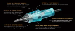 - Задната част на корпуса на иглата има вдлъбнат дизайн, огънат навътре, което е удобно и приятно за пръстите при татуиране.