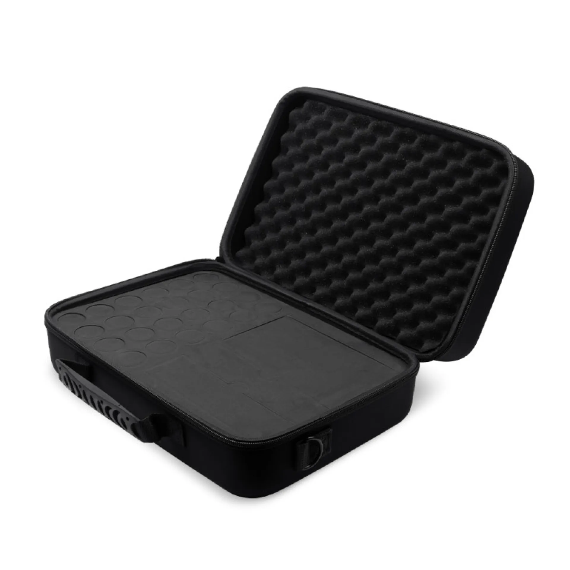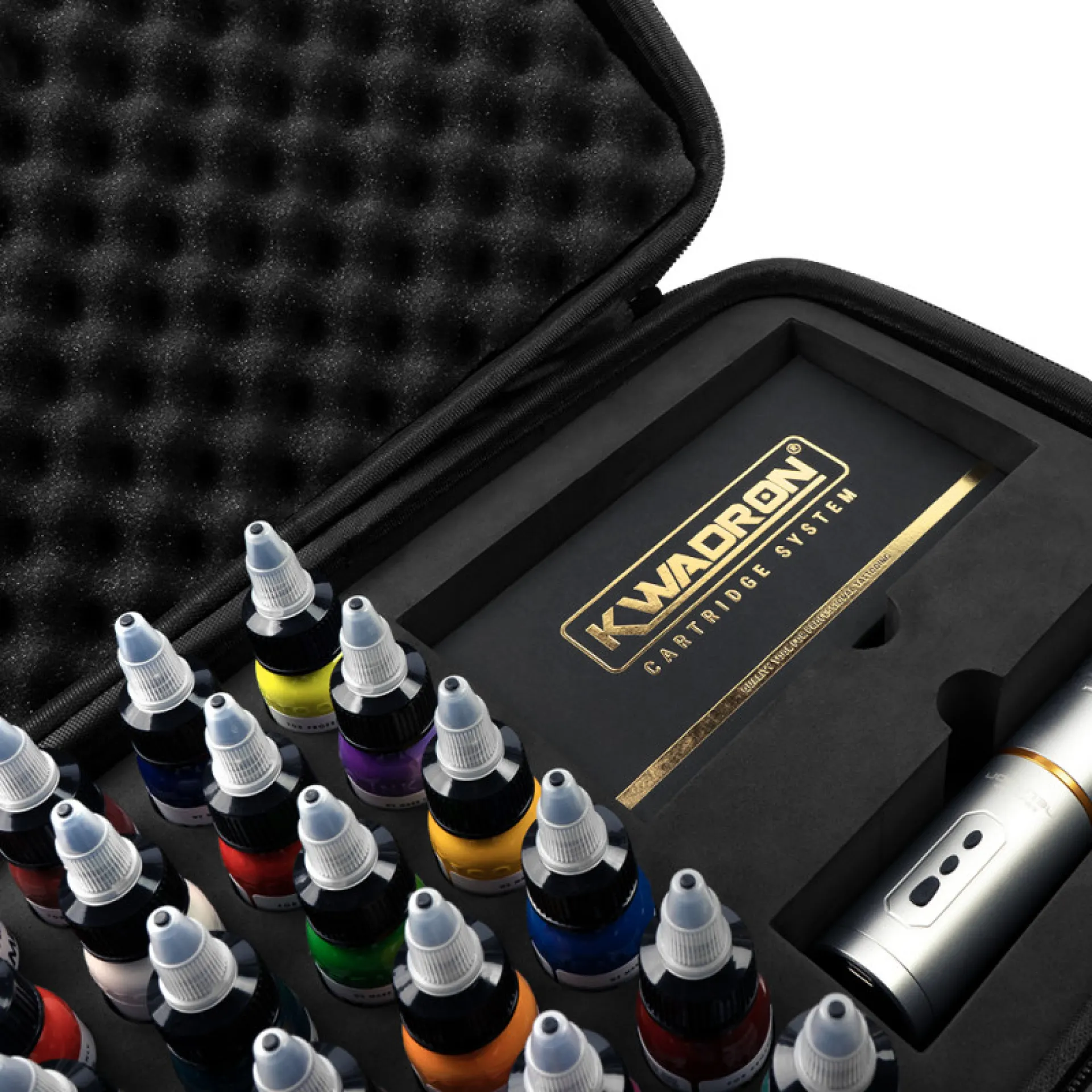 Кутията за тату оборудване KWADRON е идеалното решение за татуисти, които пътуват често. Въпреки компактните си размери, в него можете да съхранявате 24 цвята в обем от 30 мл, машина за татуировки и пакет патрони или захранване. Облицовката с пяна предотвратява изместването вътре в кутията, а заключващ се капак предпазва съдържанието от повреда. Здравата дръжка и презрамка за рамо улесняват пътуването с най-важното ви оборудване.