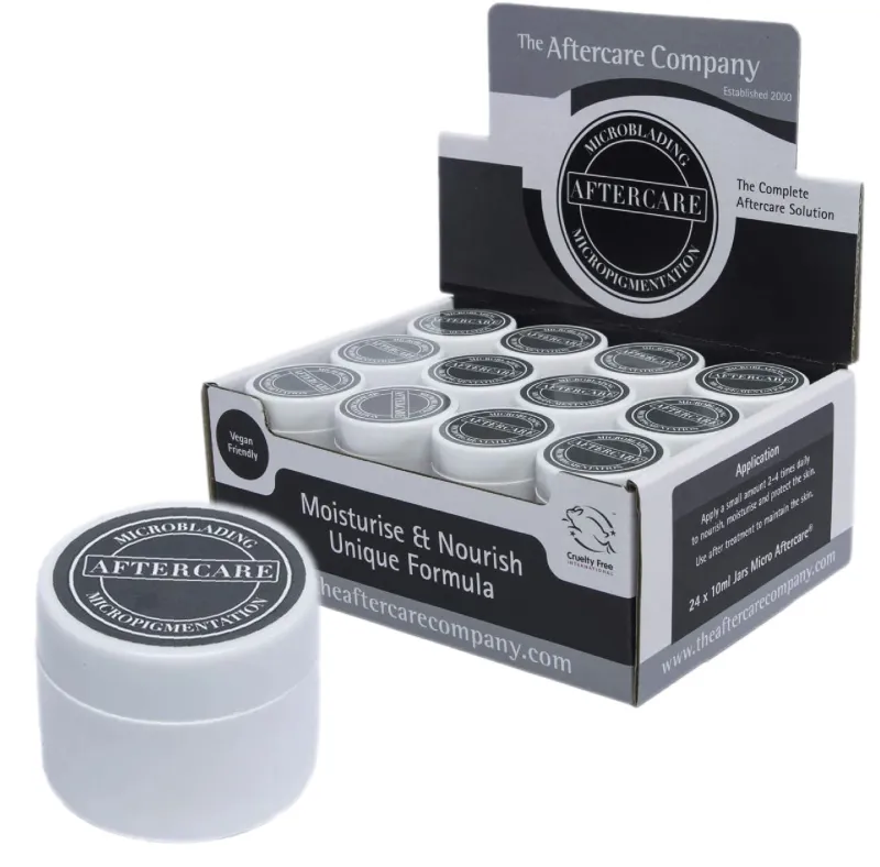 MICRO Aftercare® е грижовен балсам за употреба след процедури за микроблейдинг, микропигментация и перманентен грим. Съдържа вегански натурални съставки, известни със своите подхранващи и успокояващи свойства за грижа за кожата. Micro Aftercare® хидратира, като същевременно запазва цветовете непокътнати и живи. Кремът е богат на витамини B и E, които поддържат, защитават и помагат за заздравяването на кожата.