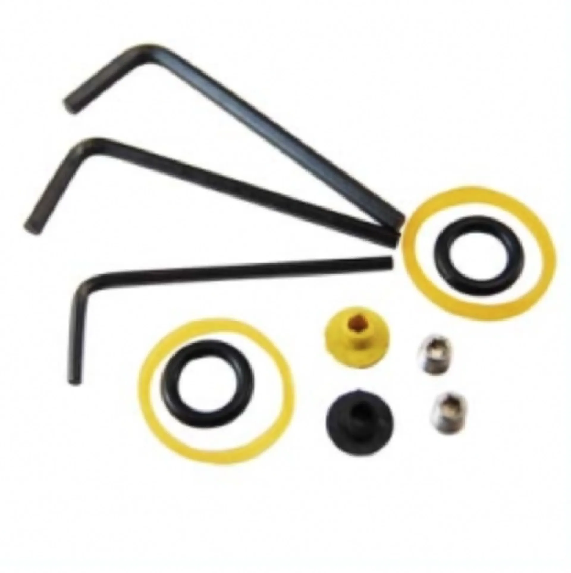Комплектът с инструменти за бобинни машини за татуировки включва 3 шестостенни ключа, амортисьорни O-пръстени, T-образни гумени уплътнения за чукчето и гумени ластици за закрепване на татуировъчната игла.