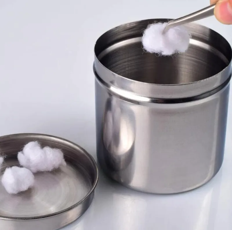 Изработена от хирургическа стомана. Почиства се отлично и бактериите не остават по повърхността. Подходящ за съхранение на чисти или използвани памучни тампони.