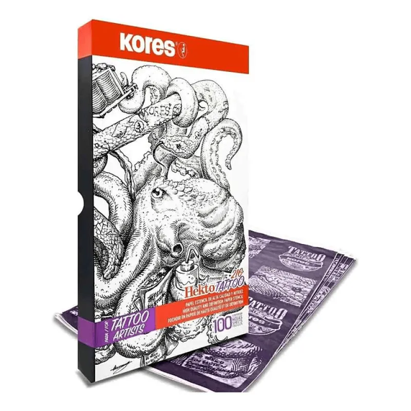 Термохартията за шаблони KORES THERMAL Stencil Hectografic е професионална термохартия за принтери и идеален инструмент за татуисти, които искат да създават уникални дизайни. Хектографската хартия за термошаблони KORES е предназначена за професионалисти, които не правят компромис с качеството на работата си. Благодарение на термичната технология, тази хартия гарантира прецизно пренасяне на шаблона върху кожата, което е от решаващо значение за татуировките. Надеждността и издръжливостта са характеристиките, които отличават този продукт от другите, предлагани на пазара.