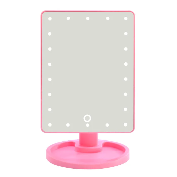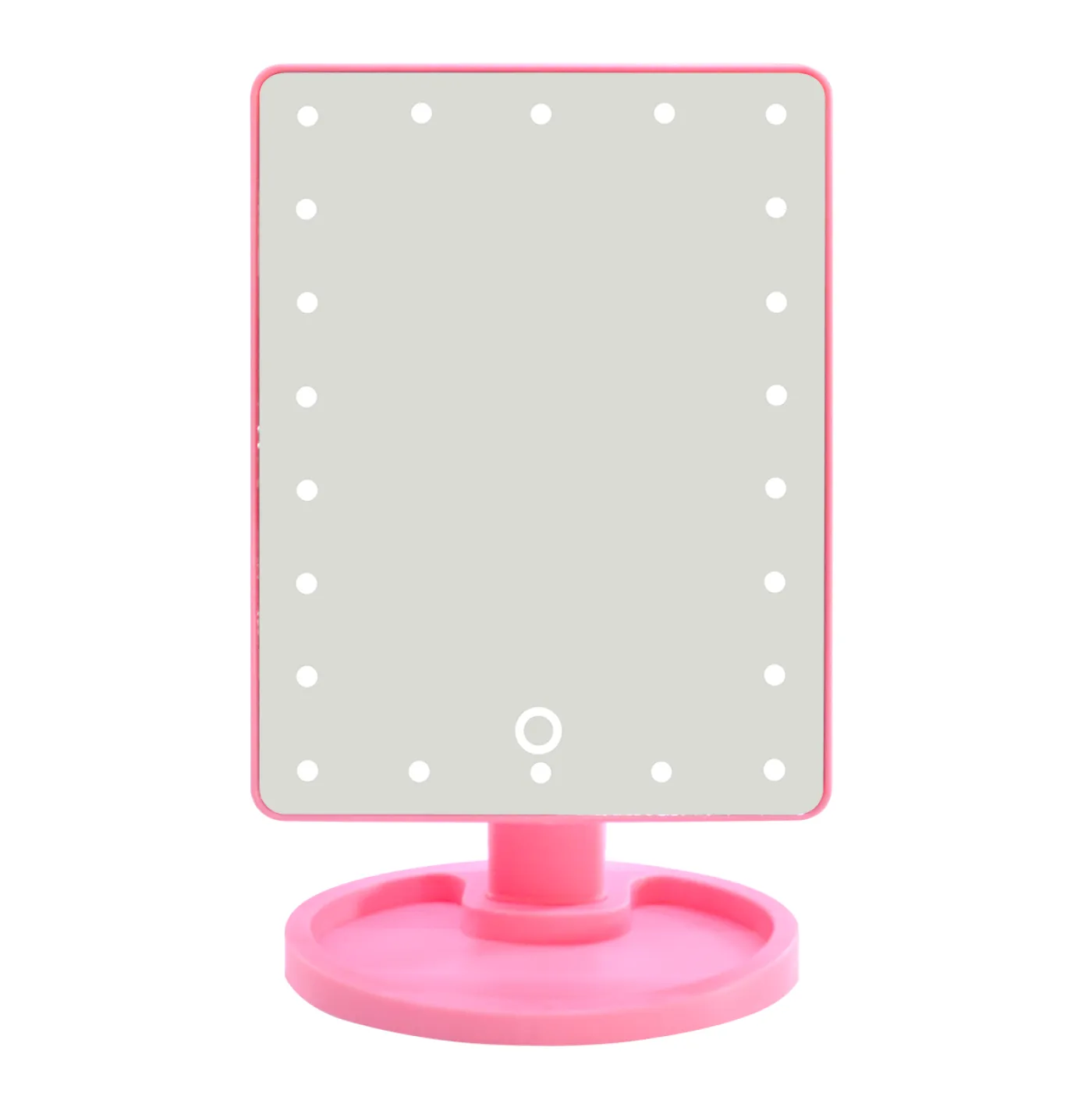 Козметично LED увеличително огледало, оборудвано с до 22 светодиода, които осветяват външната страна. Светодиодите се активират чрез докосване - с помощта на интелигентен сензорен бутон, с регулируем интензитет на осветление. LED огледалото е идеално за осветяване на цялото лице и кожа и може да се използва не само за грим, но и за други козметични процедури. LED козметичното огледало има практичен рафт за малки предмети в основата на огледалото. Той е напълно регулируем – на 360 градуса, което го прави още по-гъвкав и универсален.