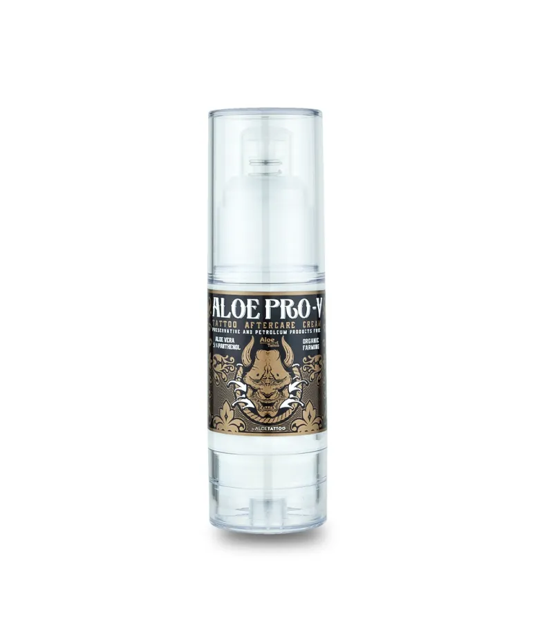 Ново от лабораторията Aloe Tattoo. Aloe PRO V е напълно без консерванти и петролни деривати. Комбинацията от висококачествено алое вера и провитамин B5 (пантенол) води до високоефективен продукт за хидратиране, защита и подпомагане на естествения процес на регенерация на новотатуирана кожа.