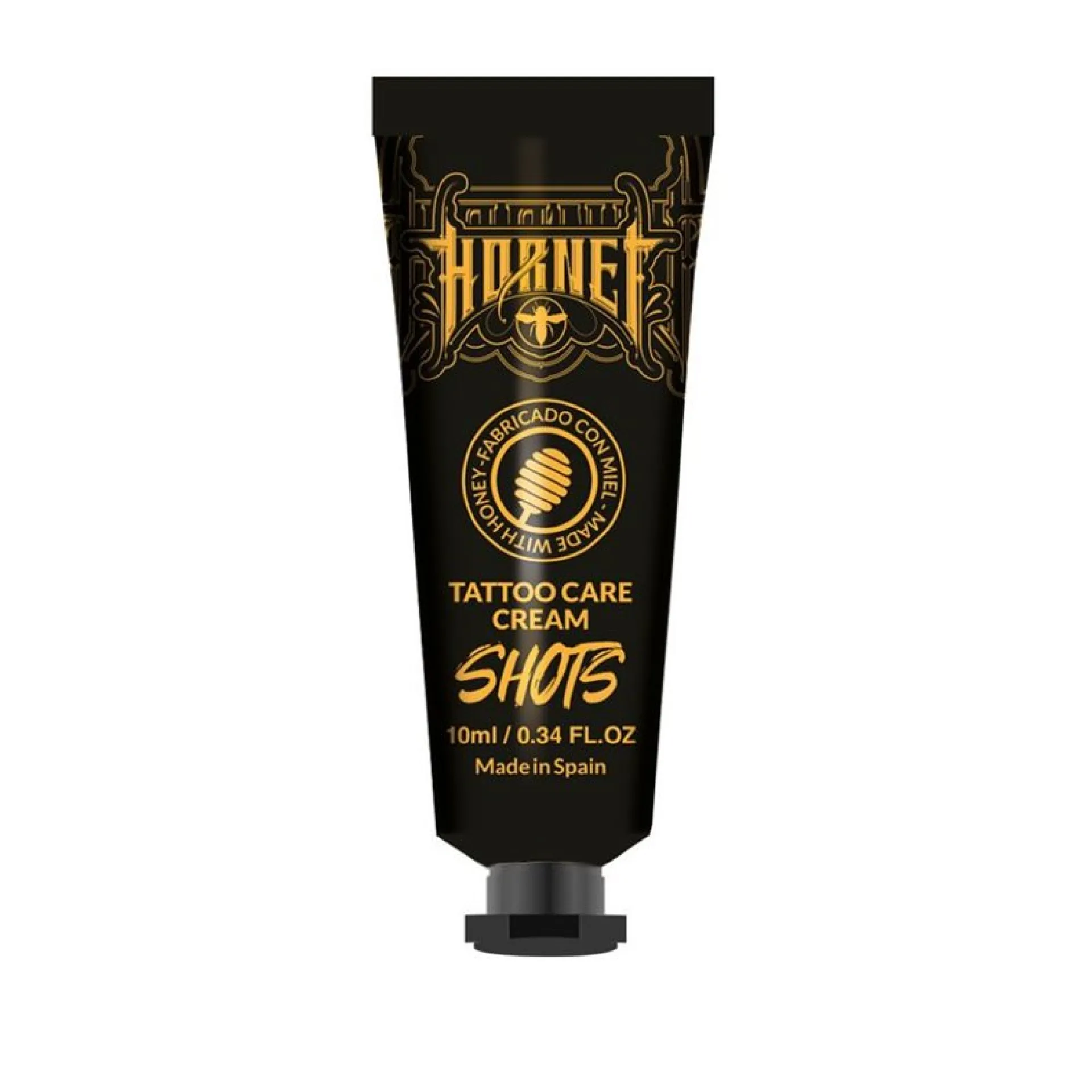 Кремът за татуировки HORNET Tattoo Cream SHOTS е успокояващ, идеален за грижа при нови татуировки. Подходящ е за всички типове кожа, формулиран със специално подбрани активни съставки на базата на пчелен восък.