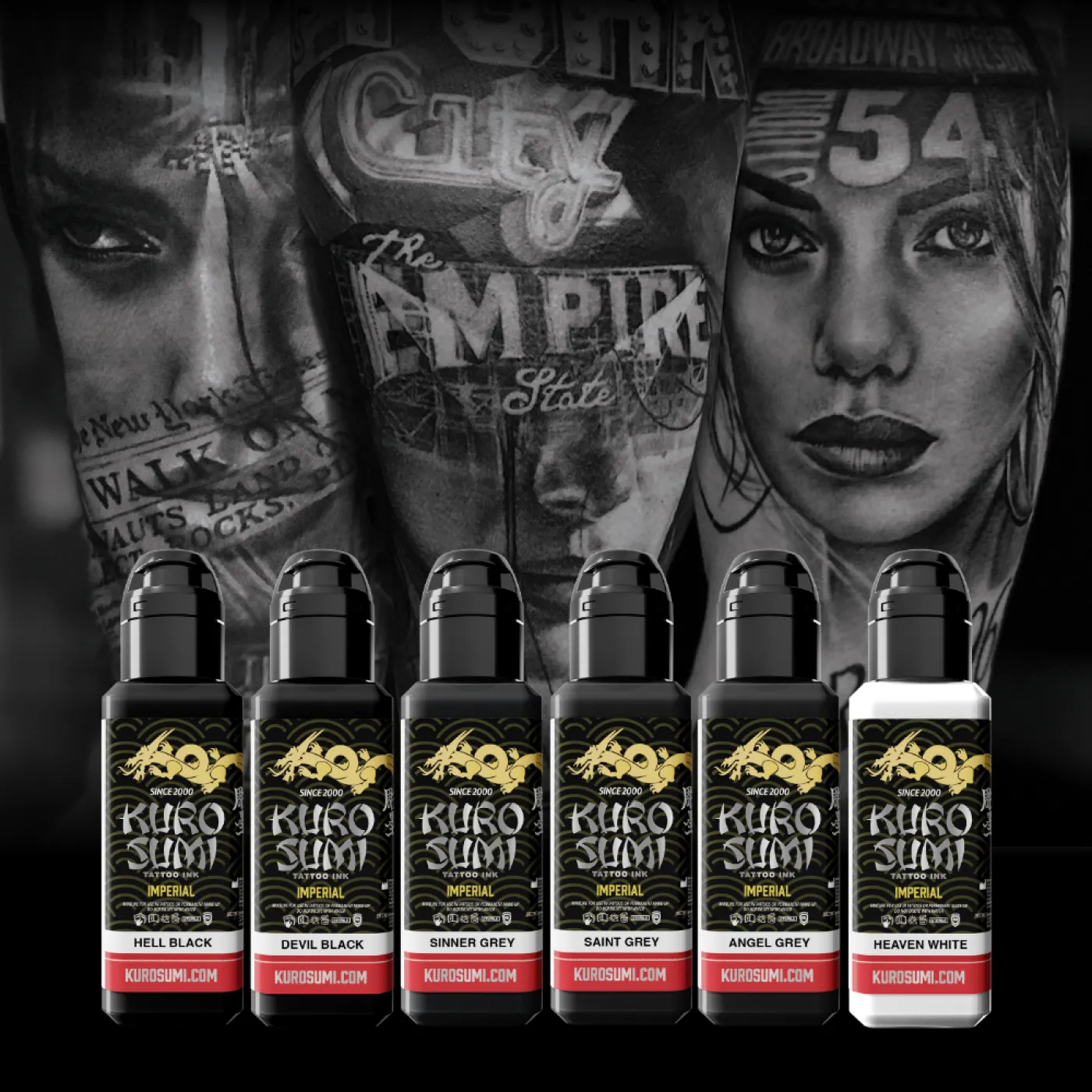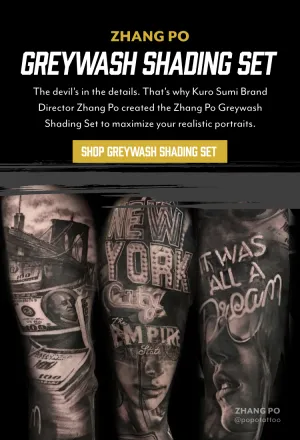 Комплектът от нюанси за засенчване Greywash е създаден от марката Kuro Sumi в сътрудничество с художника Zhang Po, който е част от техния Pro Team. Този комплект включва 6 нюанса, вдъхновени от светлините и сенките на Ню Йорк и създадени, за да позволят на художниците да уловят всички детайли от реалния живот в своите татуировки.