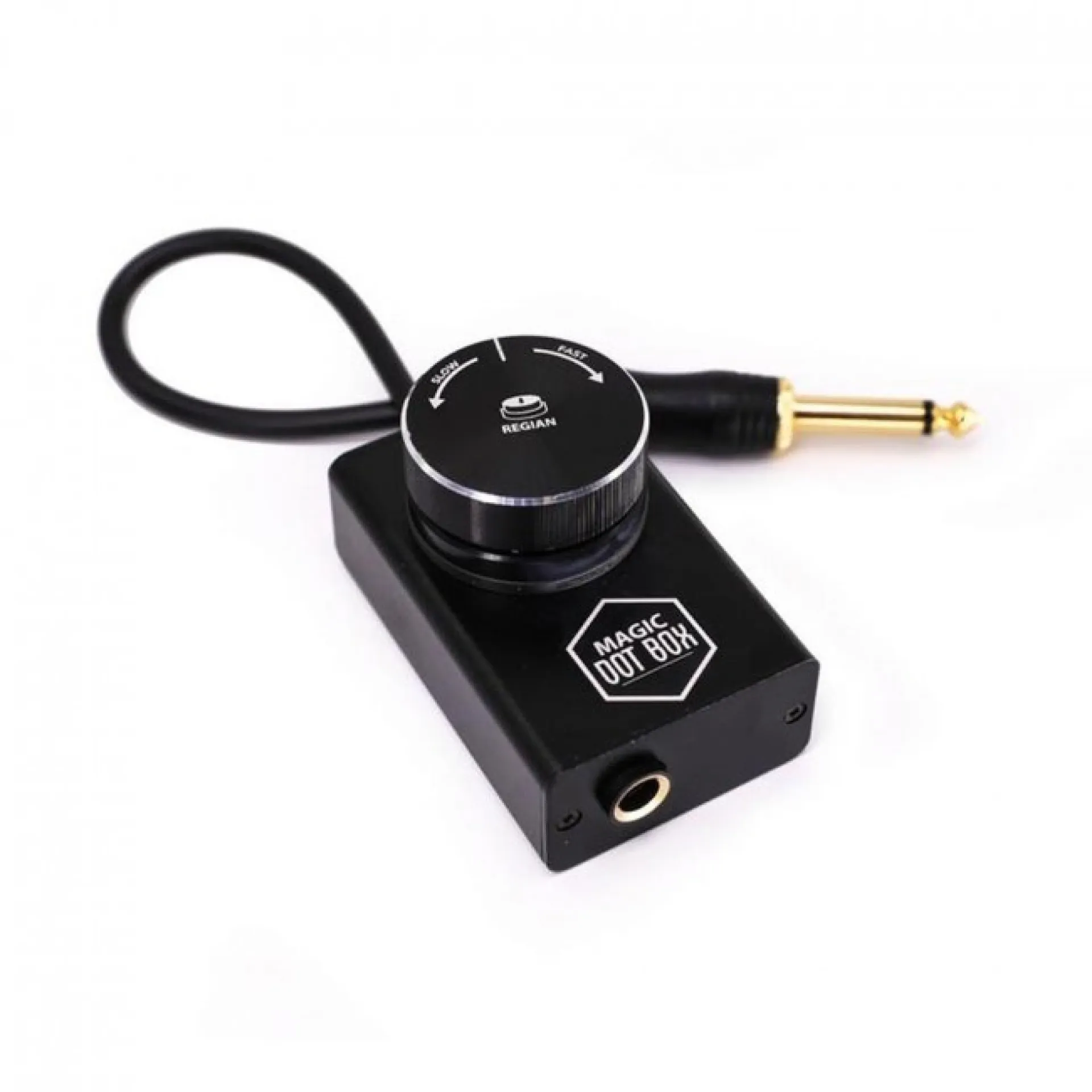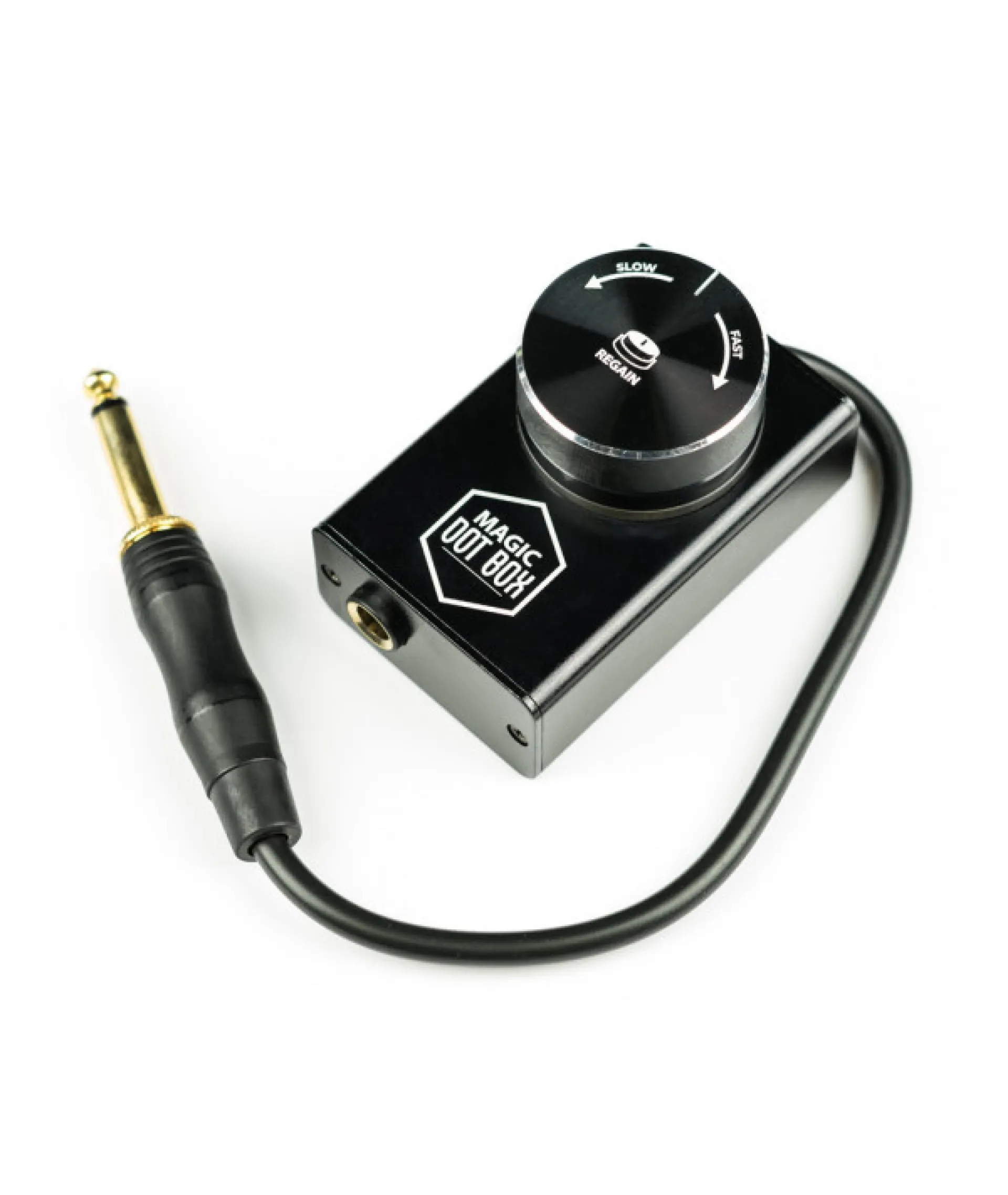 DOT box превръща всяка машина в dotwork устройство, което ще улесни създаването на ваши собствени dotwork татуировки. Устройството се управлява от обикновен въртящ се бутон, който ви позволява да регулирате скоростта от ниска до висока. Устройството е подходящо за всякакъв вид уреди. Изработен от алуминий, захранва се чрез RCA.