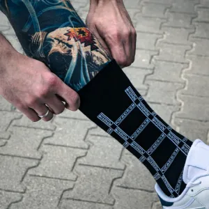 Удобни чорапи за всеки любител на татуировки. Подчертайте стила си и подкрепете страстта си към татуировките с тези оригинални черни чорапи за любители на татуировки Kwadron. Създаден за тези, които ценят комфорта и същевременно искат да изразят любовта си към изкуството на татуировките. Тези чорапи са изработени от висококачествен материал, който е приятен на допир и ще осигури комфорт през целия ден. Тези чорапи са не само чудесно допълнение към ежедневното ви облекло, но и чудесен подарък за всеки татуист или фен на тату изкуството. Няма значение дали ги носите у дома, на работа или на изложби - винаги ще изглеждате страхотно в тях!