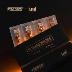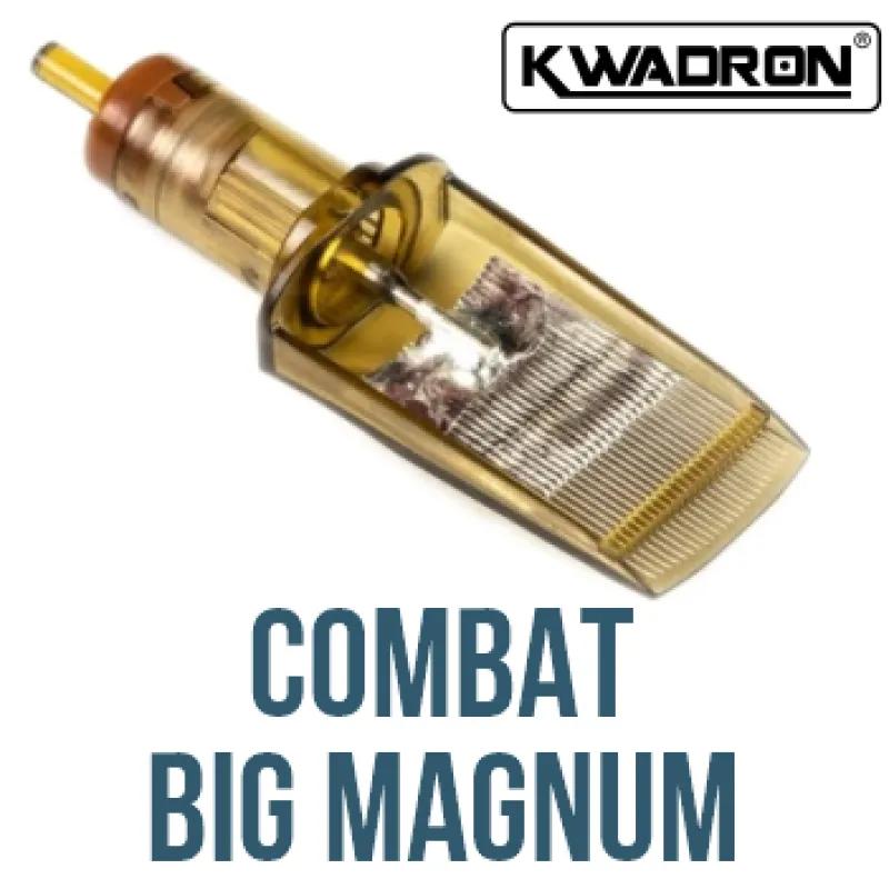 Combat Magnum е създаден в сътрудничество между марката KWADRON и Камил Мочет. Използвайки експертни знания и опит, този екип създаде продукт с отлични характеристики и най-вече качество, с което други марки не могат да се сравнят. Усъвършенстваният и автоматизиран технологичен процес, използван при производството на иглени патрони KWADRON, гарантира, че всяка бройка е еднакво перфектна и прецизна. Патроните Kwadron COMBAT имат уникална система за стабилизиране на иглата, която осигурява тяхната издръжливост и оптимална производителност. Пластмасовият корпус е изработен от медицинска пластмаса, което намалява триенето между иглата и пластмасата до минимум, като същевременно самите игли запазват остротата си по време на цялата сесия!