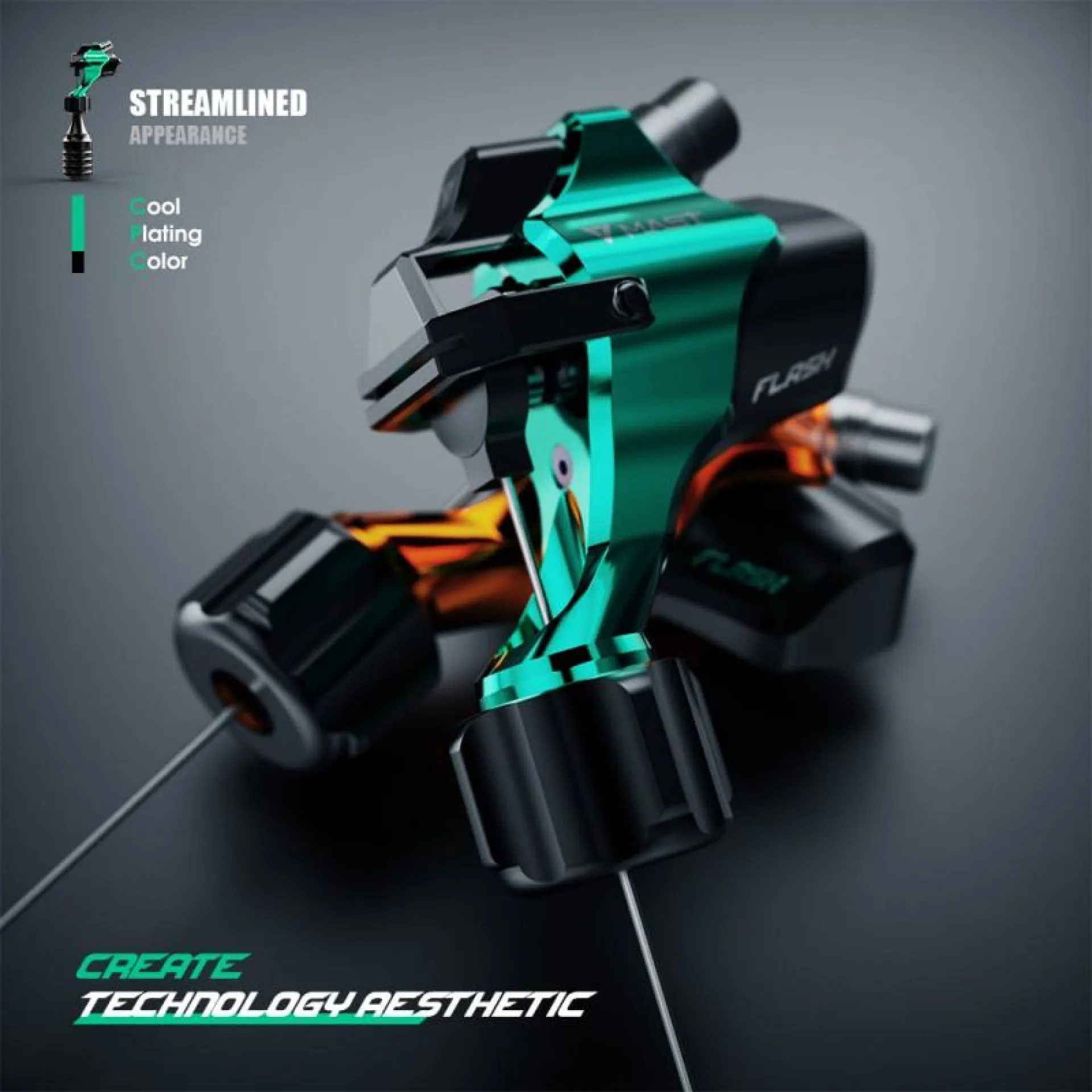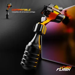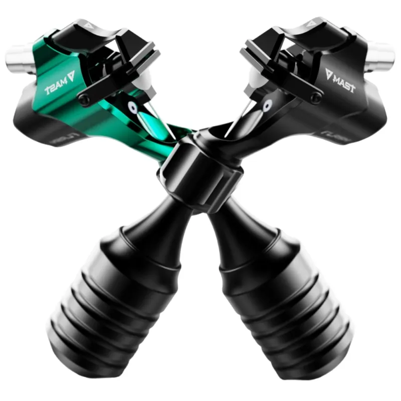 Ротационната машина за татуировки от MAST-FLASH с директно задвижване се откроява с ниското си тегло - 63 грама, удобен захват, нисък шум и ергономичен дизайн. Подходяща е за всички видове татуировки благодарение на универсалния ход от 3,5 мм. Предлага се с въртяща се ръкохватка за картридж игли и RCA кабел за свързване към стандартно захранване за татуировки.