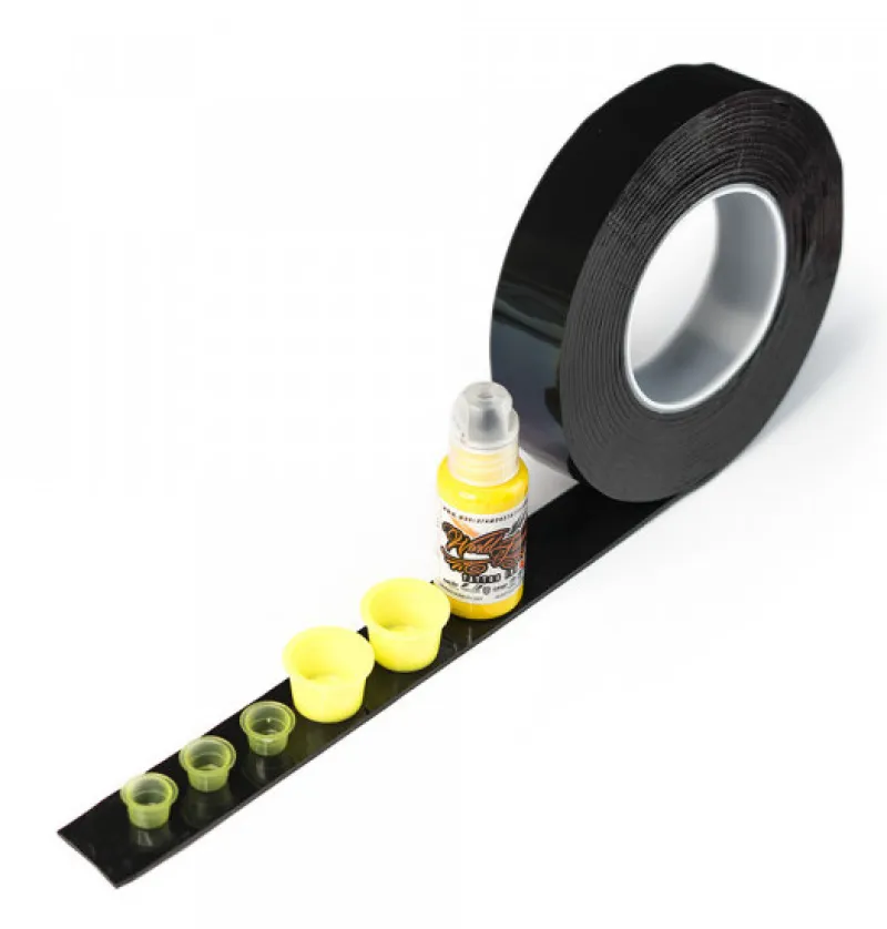 Практичен инструмент за всяко студио и салон за красота. Двустранната лента е чудесна за фиксиране на капачки за боя или други аксесоари, които трябва да бъдат защитени от падане. Лентата не оставя никакви следи от лепило по масата след отлепване и е лесна за рязане. Доставя се на рула с дължина 5 метра.