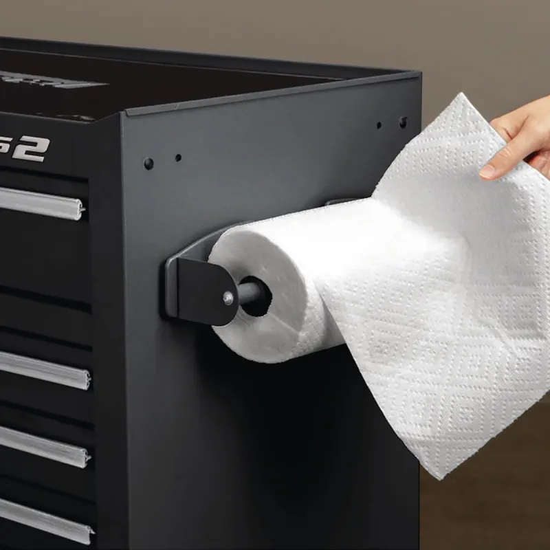 Магнитен държач за хартиени ролки. Държачът се състои от два отделни елемента, което прави възможно използването му за ролки от всякакви размери. Всеки елемент има изключително силен магнит на дъното, който се държи перфектно върху метална повърхност и може да се постави бързо и без необходимост от сглобяване. Идеално допълнение към вашето работно място или бюро.