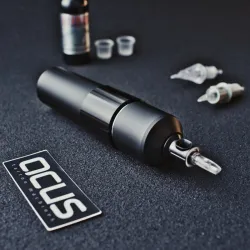 ACUS M1 е най-модерната безжична машина за татуировки, предназначена за професионални татуисти, търсещи комбинация от прецизност, производителност и ергономичен дизайн. С диаметър на ръкохватката 33 мм, дължина 128 мм и тегло 181 г (включително батерията), тя предлага удобно захващане дори по време на дълги сесии. Едно от основните и предимства е уникалната система за цифрово управление на мотора, която ви позволява да регулирате мощността и скоростта директно на машината. Тази система се захранва от безчетков мотор Faulhaber, известен със своята надеждност и производителност. Машината може да бъде напълно разглобена, което ви позволява да я почистите старателно. ACUS M1 представлява бъдещето на технологиите за татуисти, съчетавайки иновативни функции с висока производителност и комфорт.