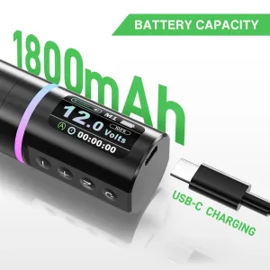 Батерията с капацитет 1800 mAh се върти на 360 градуса и осигурява от 6 до 8 часа непрекъсната работа с едно зареждане. Бързото зареждане чрез USB-C позволява пълно зареждане за около 2 часа. На дисплея на батерията се показват текущото напрежение, нивото на заряд и времето на работа. Възможността за персонализиране на цветовете на дисплея е стандартна.