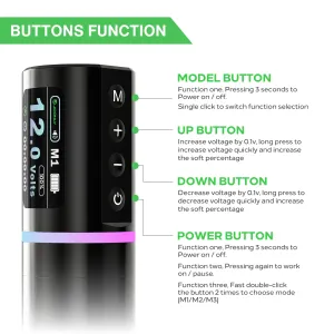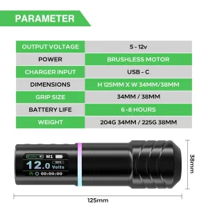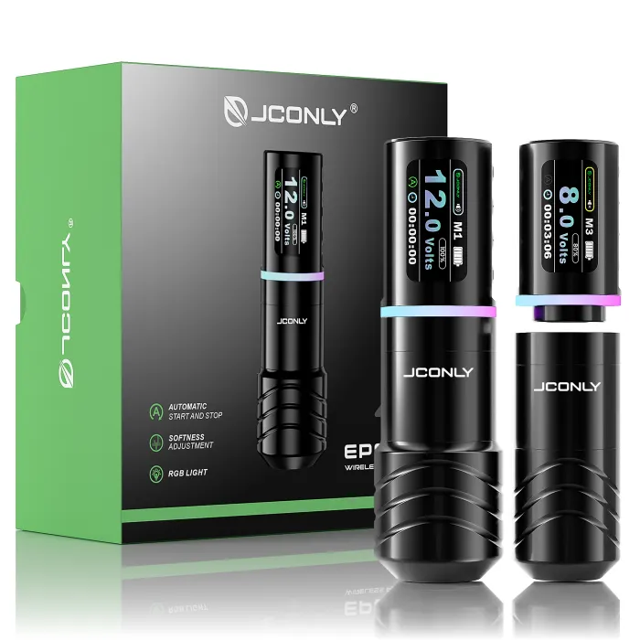 • Автоматичен режим E-soft: Адаптира се към различните типове кожа и предлага 10 нива на мекота за постигане на оптимални резултати при татуиране.
