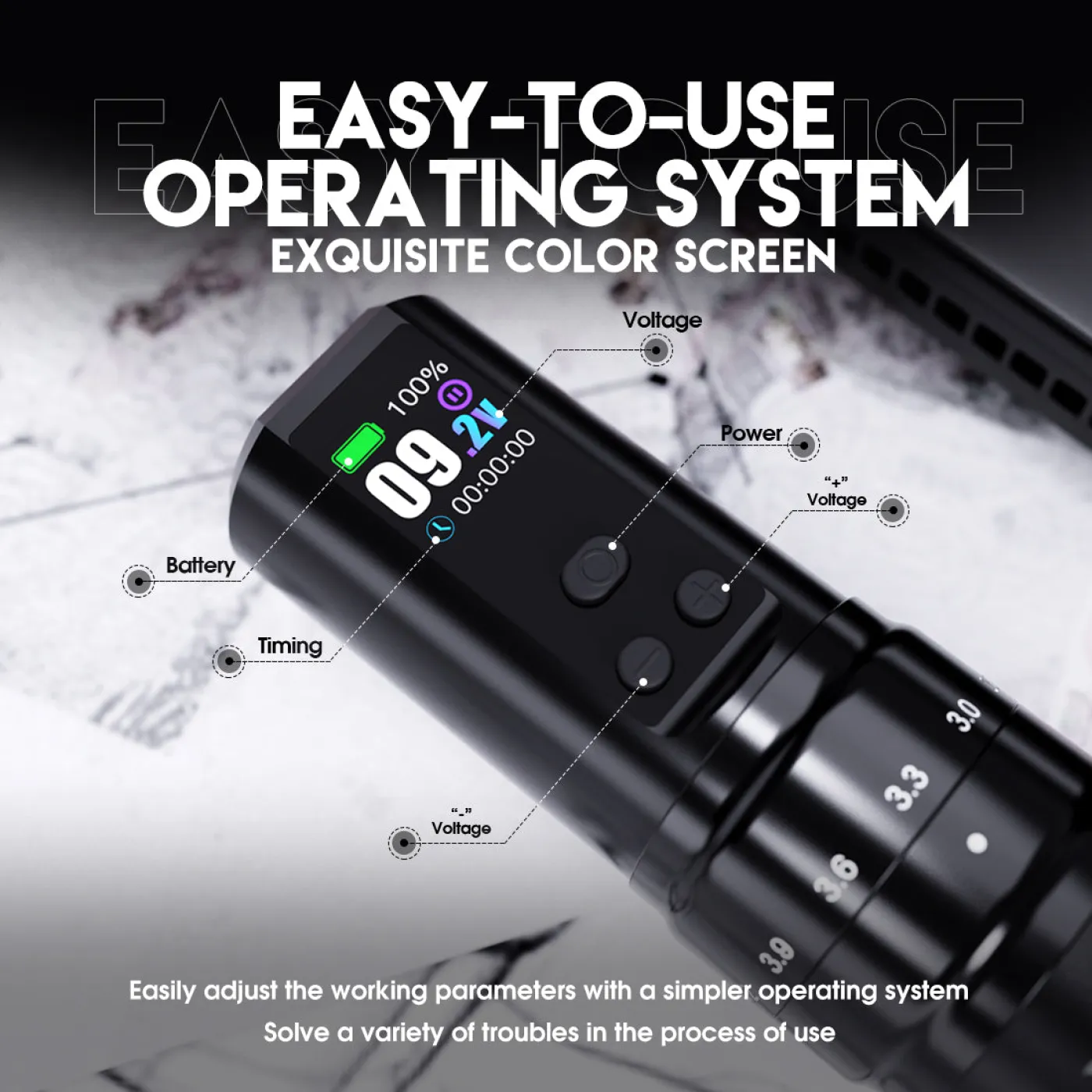 • Регулируем ход: 2.4/ 2.7/ 3.0/ 3.3/ 3.6/ 3.9/ 4.2 мм