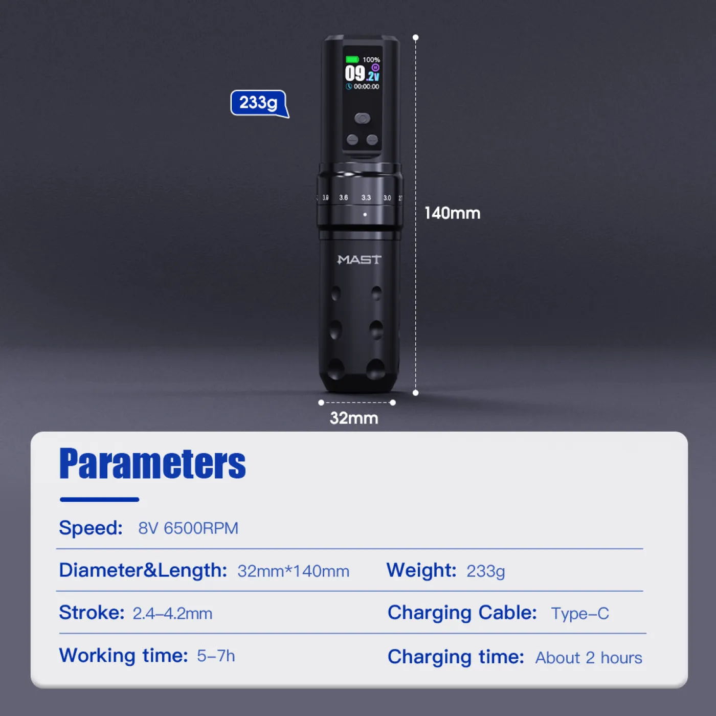 MAST Fold 2 Pro е подобрена версия на Fold Pro, която предлага батерия с по-голям капацитет с вграден LED дисплей, нов по-мощен мотор Mcore-C1, подобрена ергономичност и дизайн на машината за по-удобно захващане. Подобно на предшественика си, тя има възможност за регулиране на 7 различни хода чрез завъртане от 2,4 мм до 4,2 мм. Батерията с капацитет 2000 mAh осигурява до 7 часа непрекъсната работа с едно зареждане и показва състояние, напрежение и таймер. Mast Fold 2 Pro може да се свърже и с RCA кабел и да работи с обикновен източник на захранване за татуировки.