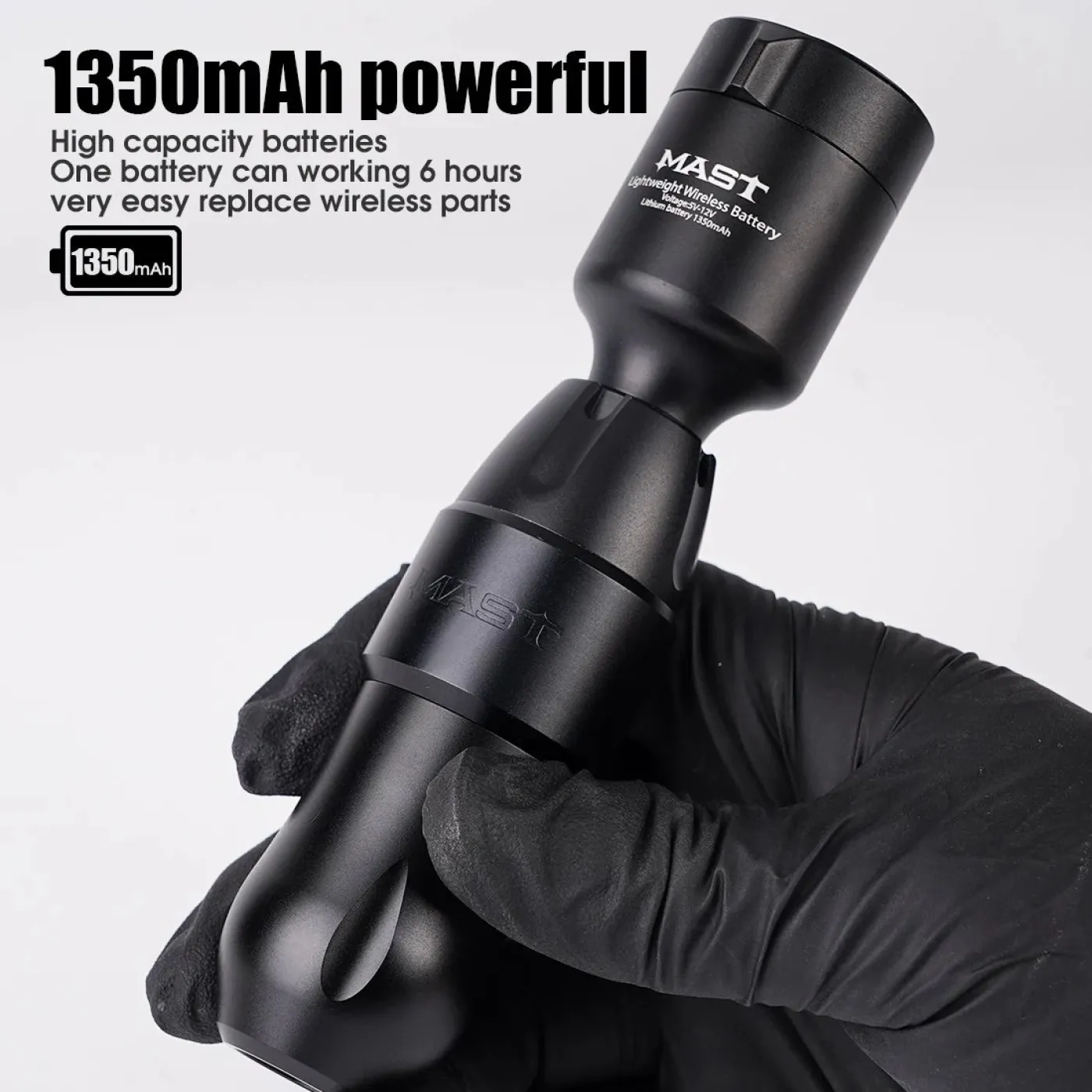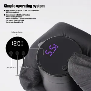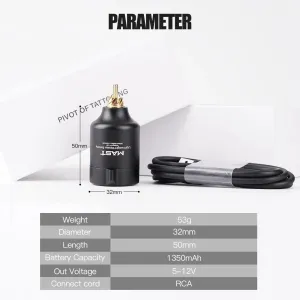 Безжичната батерия T1 от марката MAST/DRAGONHAWK предлага идеалната комбинация от мощност, компактност и практичност за всеки татуист, който търси свобода на движение без кабели. Съвместима е с повечето тату машини с RCA конектор и осигурява стабилна работа в продължение на няколко часа. С капацитет 1350 mAh, T1 се зарежда напълно за 2 часа и осигурява 3–5 часа непрекъсната работа. Благодарение на Jumpstart режима, позволява незабавно стартиране на машината, а дисплеят показва текущото напрежение и състояние на батерията. Корпусът е изработен от качествен поликарбонат и алуминий, което му придава висока издръжливост и при интензивна употреба.