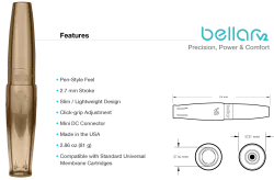 Свържете Bellar V2 с нашия Airbolt Mini, лека алтернатива на традиционните RCA кабели, която позволява по-добро движение, или с класическо захранване, като например ATOM XR. Bellar V2 има нова и подобрена дръжка за регулиране с „щракване“, функция, удобна за артистите за по-прецизно регулиране по време на PMU процедури. Следователно регулирането на удължаването на иглата ще бъде още по-прецизно от преди.