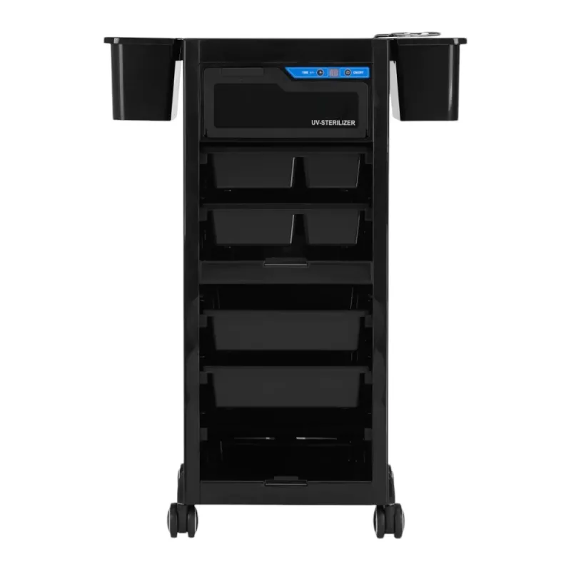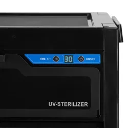 Мобилната маса с UV стерилизатор 68 UV-C е практичен помощник за всеки салон за татуировки или козметика. Масата разполага с просторен органайзер, оборудван с набор от отделения за съхранение, които ще ви помогнат да поддържате работното си място подредено. Можете свободно да променяте подредбата им в органайзера според вашите нужди. В горната част на масата има място за съхранение на инструменти по време на работа. Голямо предимство на масата е вграденият UV-C стерилизатор, който е идеално решение за бърза и безопасна дезинфекция на малки устройства и аксесоари за татуиране, PMU или козметика. Бързо и лесно почиства повърхността на инструментите от повечето патогени. Вътрешността е изработена от хирургическа стомана и е огледална, което отразява UV лъчите и осигурява по-щателна дезинфекция. Мощна кварцова тръбна лампа с дължина на вълната 254 nm ефективно унищожава различни форми на микроорганизми. Препоръчителното време за обработка е 10 минути, но може да се зададе произволно между 5 и 30 минути, като времето се отброява от цифровия дисплей. Благодарение на семплия си дизайн, масата е подходяща за всеки интериор. Изработен е от лесен за почистване и издръжлив материал. Гумираните колела осигуряват мобилност, позволявайки да се движи свободно и плавно, когато е необходимо.