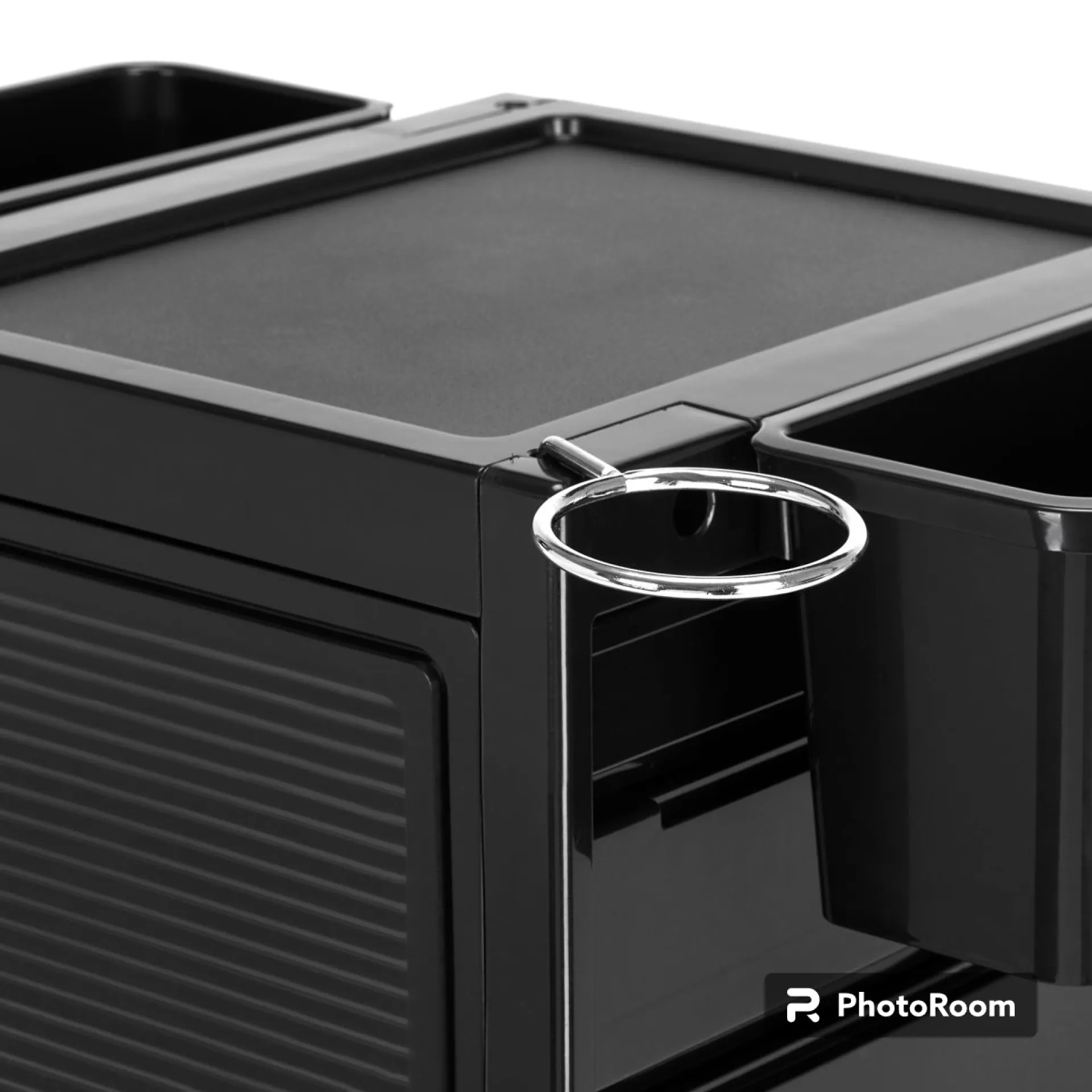 - Горната част съдържа интегриран дълбок отвор, напр. за бутилка с пипета, мастило за татуировки или друг по-голям контейнер