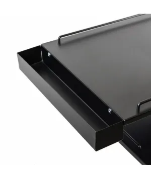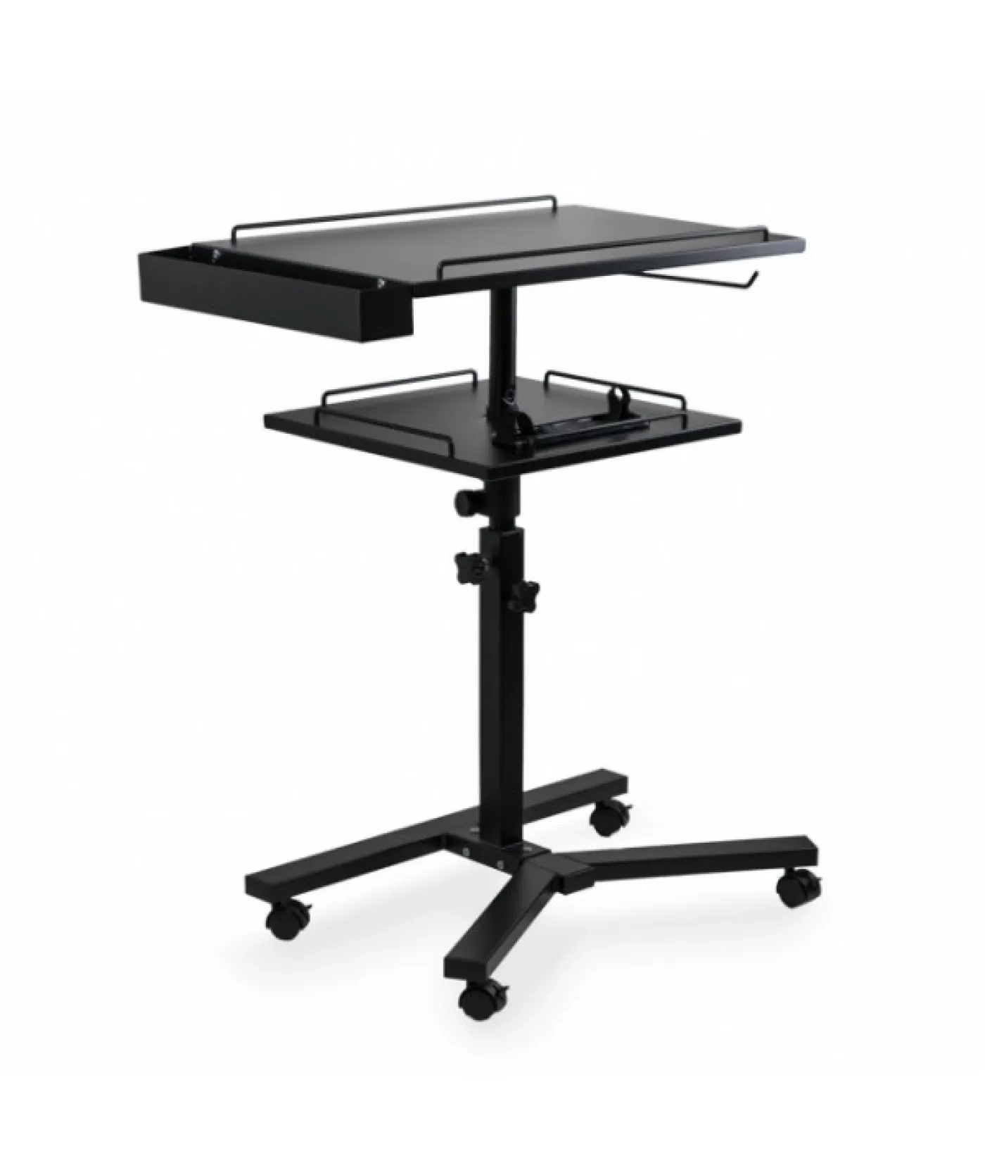 Качествена маса за всяко студио за татуировки или красота. Масата е изработена от лека стомана, което я прави здрава, но същевременно лесно мобилна. Както подсказва името, масата е съставена от два отделни рафта, всеки с предпазни бариери по ръба, за да държите аксесоарите си там, където им е мястото. Горният рафт включва подвижна секция за безопасно съхранение на бои или други течности. Разбира се, има и държач за кухненска хартия и ръкавици.