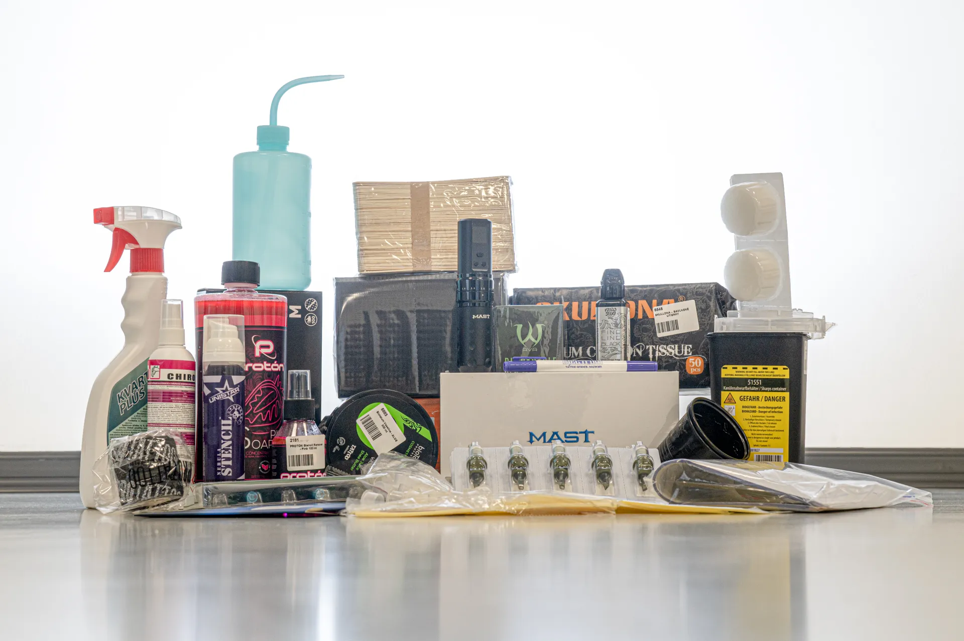 Искаш да започнеш с татуирането, но не знаеш от какво точно ще имаш нужда? Сглобихме ценово достъпен татуировъчен комплект, който ти позволява удобно да тренираш техниката, да се усъвършенстваш и да развиваш уменията си. Комплектът е подходящ не само за работа с изкуствена кожа, но също така осигурява стабилна основа и за бъдещото ти развитие.