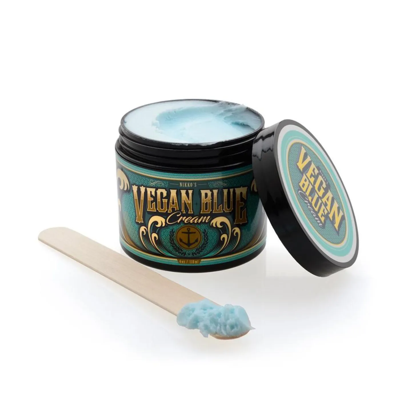 Nikko Hurtado е икона за татуировки, която е позната не само в САЩ, но и в други части на света. Vegan Blue е крем, използван по време на татуиране, който Nikko създава в продължение на почти 2 години, докато постигне желаното качество. Както подсказва името, това е 100% веган продукт без вазелин, който не запушва порите по време на татуиране.