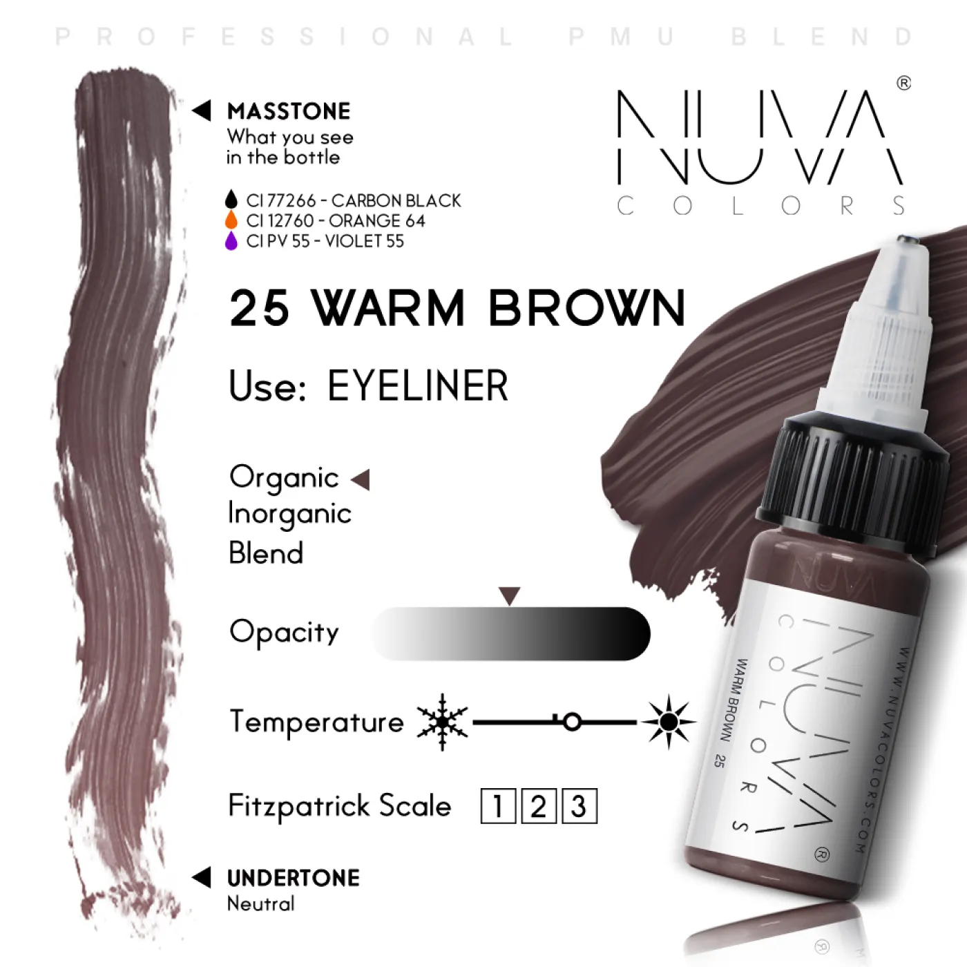 Представяме ви NUVA COLORS USA - нова линия висококачествени пигменти за перманентен грим, създадени с мисъл за нуждите на истинските PMU артисти. Широката гама от пигменти NUVA COLORS ще ви помогне да постигнете желаните ефекти. От фини естествени нюанси до смели и драматични цветове, пигментите NUVA COLORS предлагат безкрайни възможности за създаване на зашеметяващи PMU визии. Пигментите NUVA COLORS осигуряват сияен и дълготраен ефект.