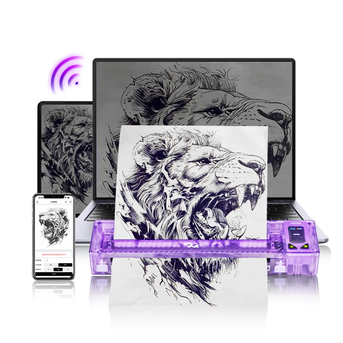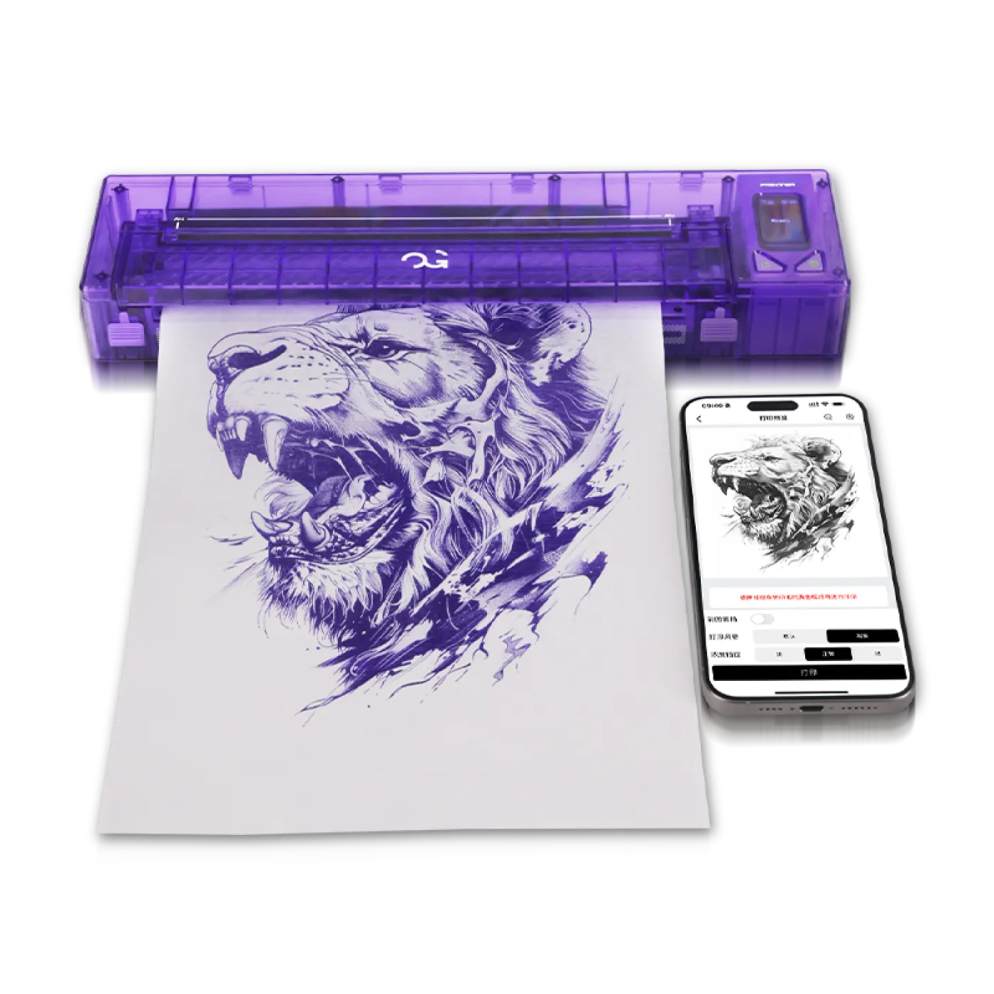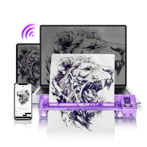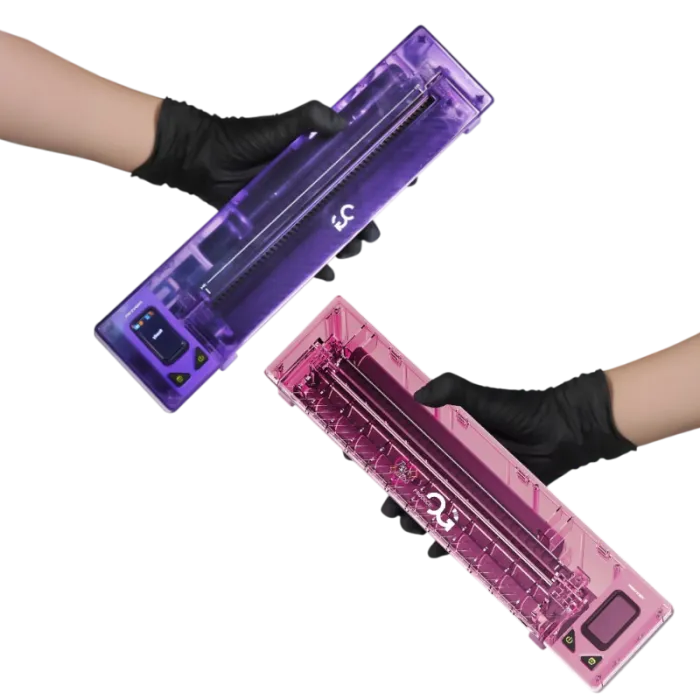С безжичния принтер OG FURY винаги ще постигате изключително чисти и прецизни шаблони за прехвърляне на тату мотиви. Устройството е създадено да отговаря на най-високите изисквания — максимална точност, бързина и мобилност. Компактният корпус със заоблени линии и модерен дизайн в лилаво или розово перфектно се вписва във всяко професионално студио.