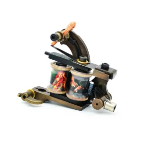 Машина за татуировки с бобина – класика, която никога не омръзва. Рамката е изработена от месинг с помощта на CNC, което придава на машината прецизни детайли във всяка посока. Оборудвана е с ръчно навити медни бобини, плочи от синя стомана и висококачествен контактен винт. Можете да свържете машината чрез класически clipcord кабел, а освен това разполага и с RCA конектор за използване с удобен RCA кабел.