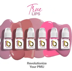 True Lips е вълнуващ комплект за пигментиране на устни, създаден от основателката на Eveflo Colours и експерт по PMU Лулу Сицилиано. Подобно на много други продукти на Evenflo, пигментите True Lips са изработени от висококачествени суровини, които отговарят на стандартите за безопасност, за да ви помогнат да постигнете оптимални резултати за кратко време на заздравяване. Пигментите в комплекта са идеални за техниката ​​Lip Blush и Lipstick. Комплектът съдържа общо 6 нюанса от наситено, средно, светло розово, до красиви естествени цветове.
