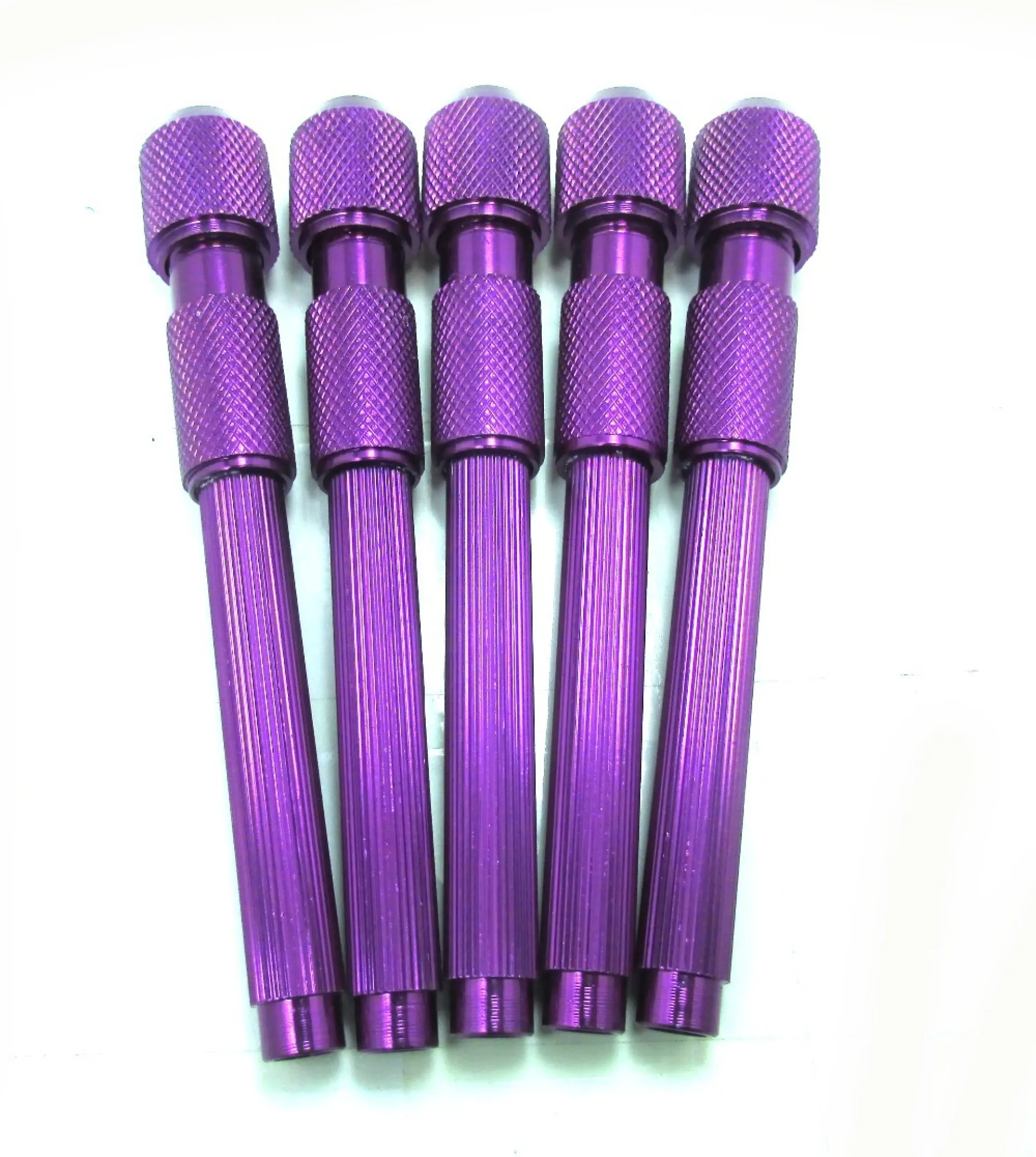 Чрез комбинирането на този алуминиев държач и молив, получавате отличен инструмент за рисуване, независимо дали директно върху кожата или при подготовката на дизайн. Кабелът се затяга в дъното чрез завъртане на механизма. Повърхността е леко грапава, за да се предотврати подхлъзване по време на работа. Предлага се в черно и лилаво.