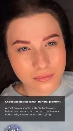 CHOCOLATE BATISTE B100 MINERAL е студен, тъмно шоколадово-кафяв пигмент, идеален за клиентки с тъмнокафява или кафява коса. По-интензивен резултат се постига при по-плътно нанасяне.