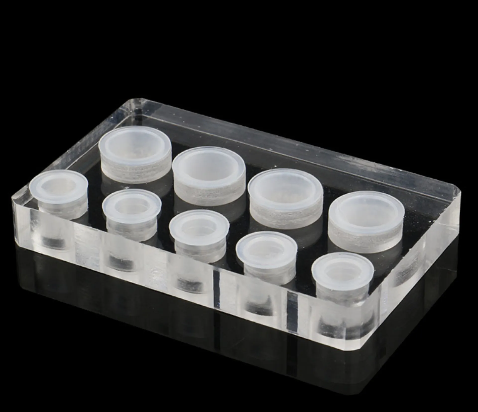Практична, стабилна стойка за пластмасови чаши с боя. Стойката е изработена от плексиглас и е лесна за поддръжка. Съдържа общо 4 отвора за чашки с размер M, но е възможно да се поставят и големи чашки "LARGE". В долната част има 5 отвора за малки чашки размер S.