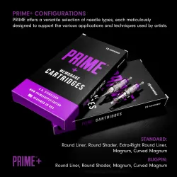 Картридж иглите PRIME+ от американската марка PRIME TATTOO SUPPLY са създадени с цел да предложат професионално качество на достъпна цена, като отговарят както на нуждите на начинаещи, така и на опитни татуисти. Независимо дали става въпрос за фини линии, реалистично засенчване или наситени цветни запълвания, тези игли покриват всички техники и стилове. Те са стерилизирани с EO газ и изработени от медицинска пластмаса, което гарантира максимална хигиена и безопасност по време на работа. Разполагат с остри, прецизно наточени игли, които минимизират съпротивлението и намаляват дразненето на кожата, осигурявайки по-гладък процес на татуиране. Мембранната система ефективно предотвратява обратен поток на кръв и мастило към машинката, удължавайки нейния живот и повишавайки нивото на хигиена. Картридж иглите PRIME+ са съвместими с всички ротационни машини от нашето предложение.
