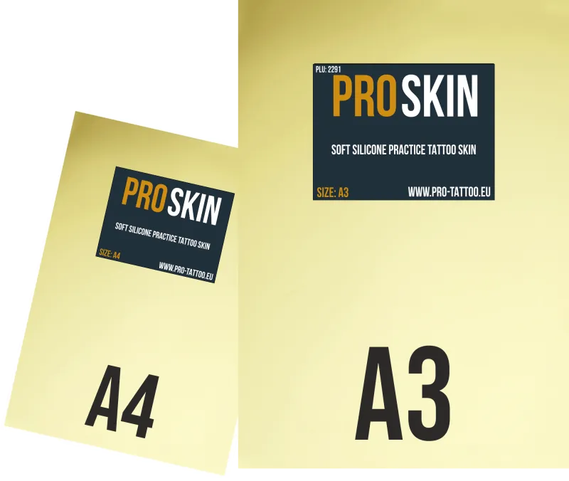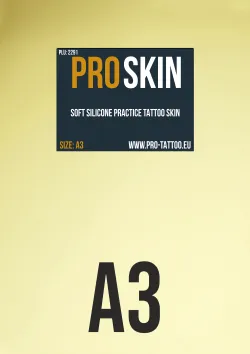 Pro Skin е изкуствена кожа, изработена от висококачествен материал, който е гъвкав и мек на допир. Pro Skin перфектно задържа мастилото или пигментите за татуировки и затова е незаменим аксесоар за всеки начинаещ или дори опитен художник, който обича да експериментира и да изпробва всички нови неща.