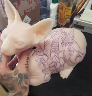 Сфинксът е подходящ за обучение или татуиране, а след това и като идеално допълнение към вашето студио, което със сигурност ще впечатли всеки посетител. Както е известно с нашата изкуствена кожа PRO SKIN, ние използваме само висококачествен синтетичен материал, който е гъвкав и мек на допир. Материалът PRO SKIN задържа добре мастилото за татуировки, не се замърсява при триене и, разбира се, е възможно да се нанесе върху мотива стандартни методи.