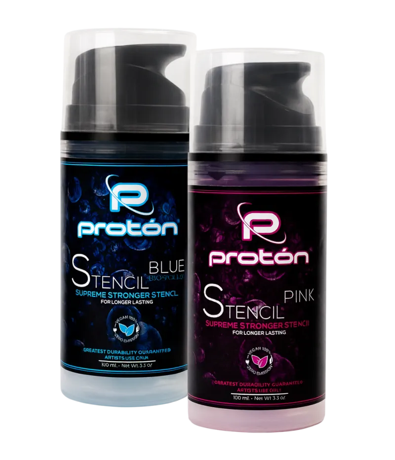 Професионалният праймер за шаблони от PROTON TATTOO е гел за пренасяне на мотив върху кожата. Произведен е в Испания по рецептата на колумбийски татуисти от Меделин, които са създали дълготраен гел, който действа незабавно, издържа стотици втривания и остава върху кожата до 15 часа! За разлика от течните трансферни течности, Proton Stencil Primer има гел консистенция и се нанася в малки количества, което значително намалява разхода и следователно разходите ви.