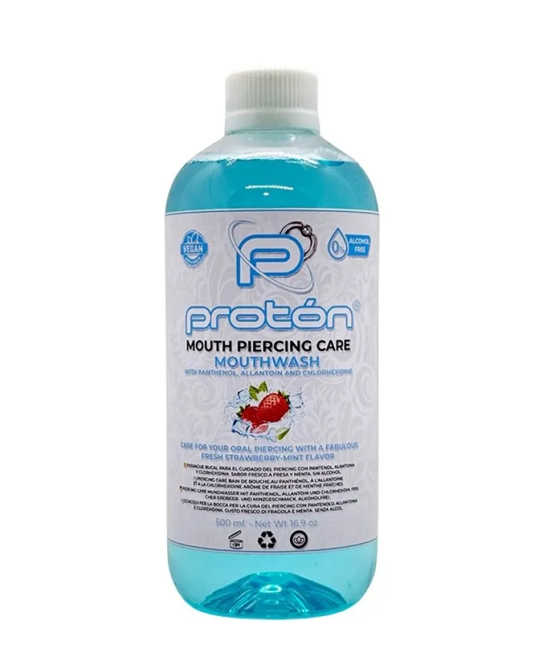 Водата за уста с вкус на ягода и мента на Proton е предназначена изключително за цялостна грижа за пиърсинг на устната кухина, предлагайки оптимална защита и ефективно заздравяване на рани от всеки етап. Не съдържа алкохол, което минимизира дразненето по време на лечебния процес. Благодарение на съдържанието си на хлорхексидин от 0,12%, той предотвратява инфекции и осигурява цялостно почистване на устната кухина. Глицеринът, пантенолът и алантоинът защитават устната тъкан, насърчават регенерацията по време на лечебната фаза и намаляват раздразнението. Водата за уста с ягода и мента отговаря на най-високите хигиенни стандарти и осигурява отлична грижа за устната кухина. Тя е предназначена да защитава и се грижи не само за зоната на пиърсинга ви, но и за цялата устна кухина.
