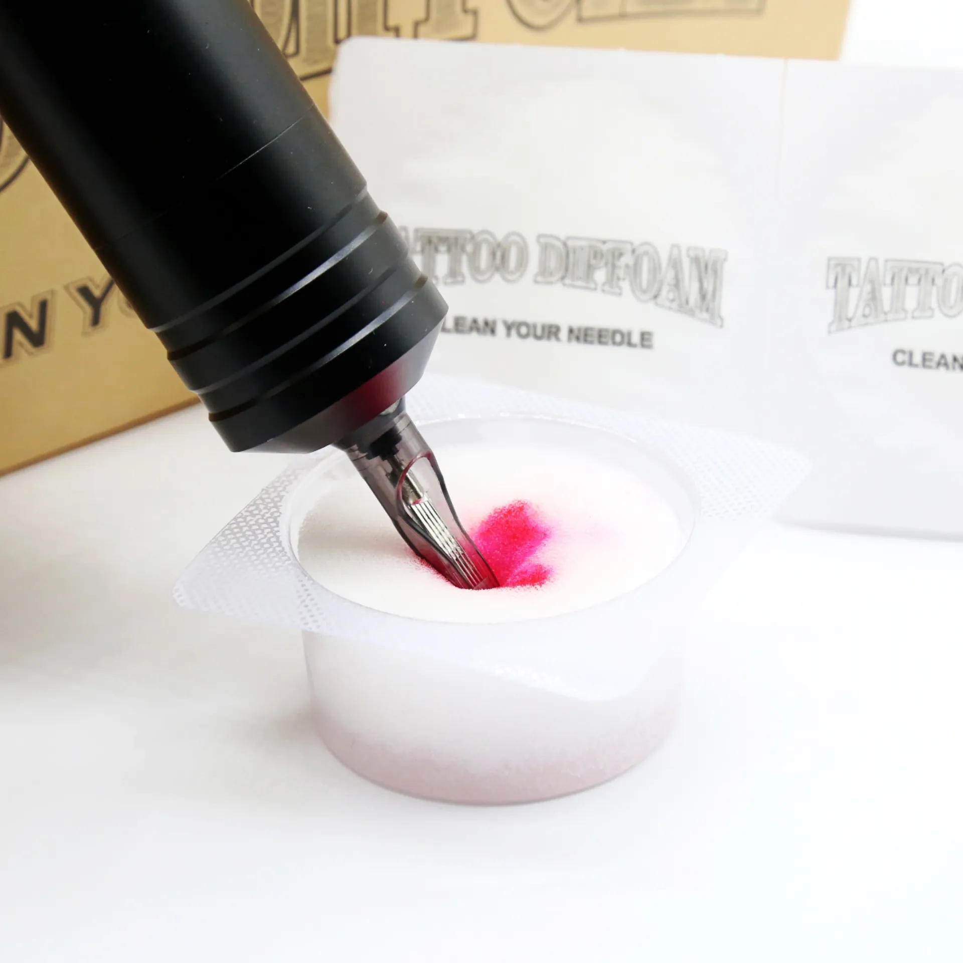 Dip Foam е екологична гъба за почистване на иглата по време на работа. Тя мигновено абсорбира боята от иглата и върха, което ви позволява бързо да сменяте нюансите на боята. По време на работа, просто налейте малко количество дестилирана вода в контейнера и натиснете леко.