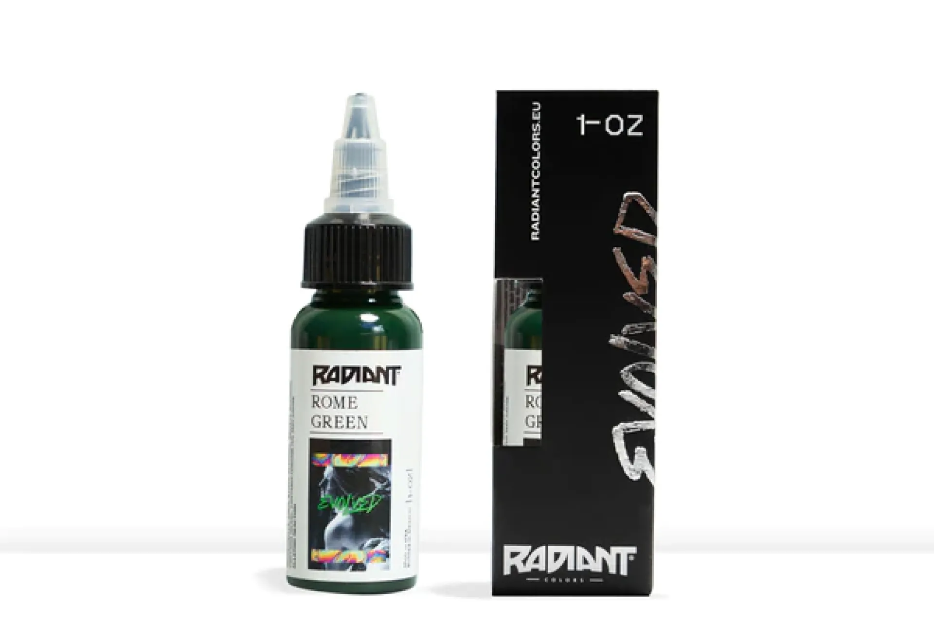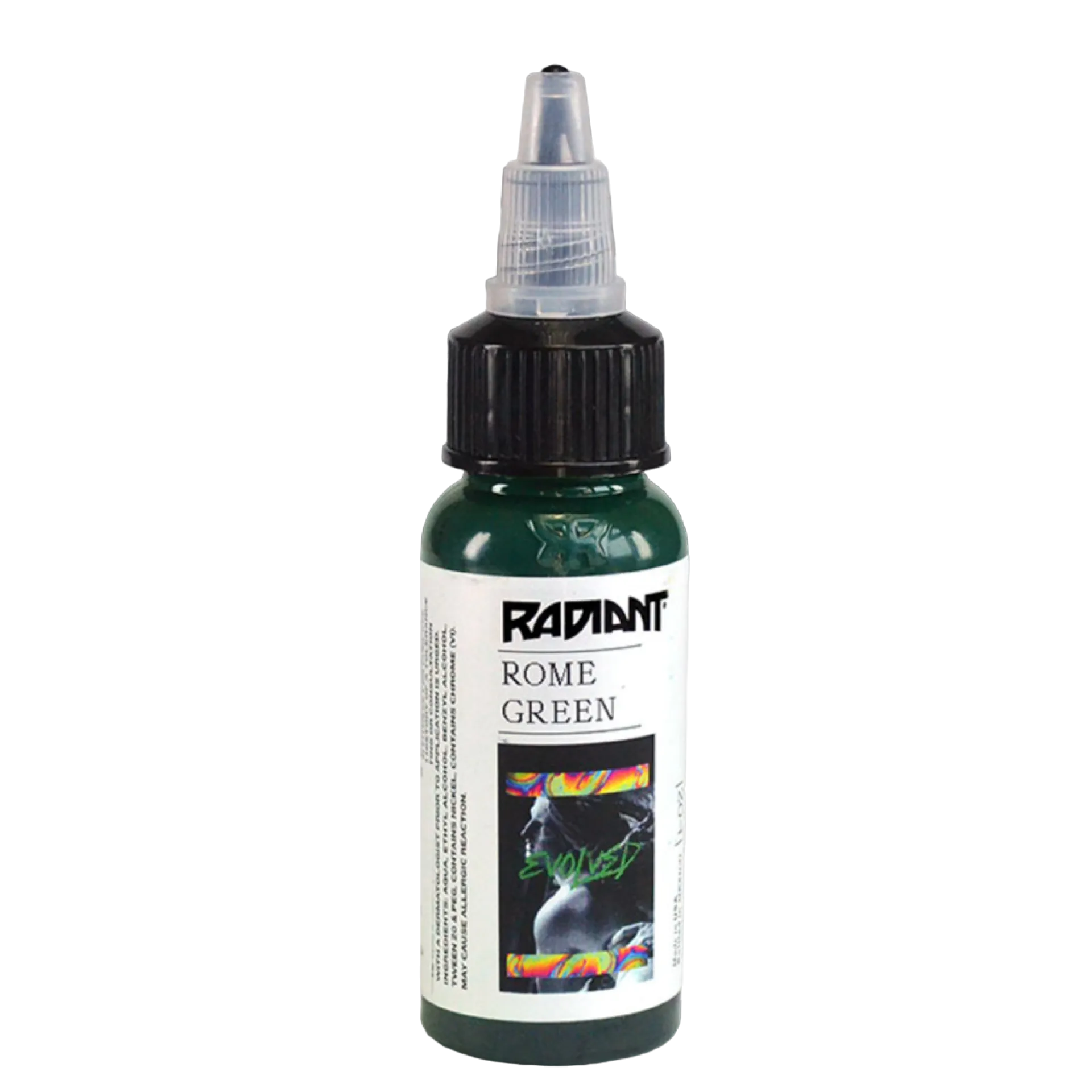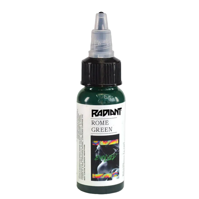 Radiant Evolved Colors са цветове за татуировки, разработени с известни татуисти от цял ​​свят. Благодарение на богатия ни опит и най-новите технологии в тази област, са създадени мастила за татуировки, изработени от чист хомогенизиран пигмент, които са лесни за нанасяне, дълготрайни и ярки. Линията EVOLVED е в съответствие с регламента TATTOO REACH 2023.