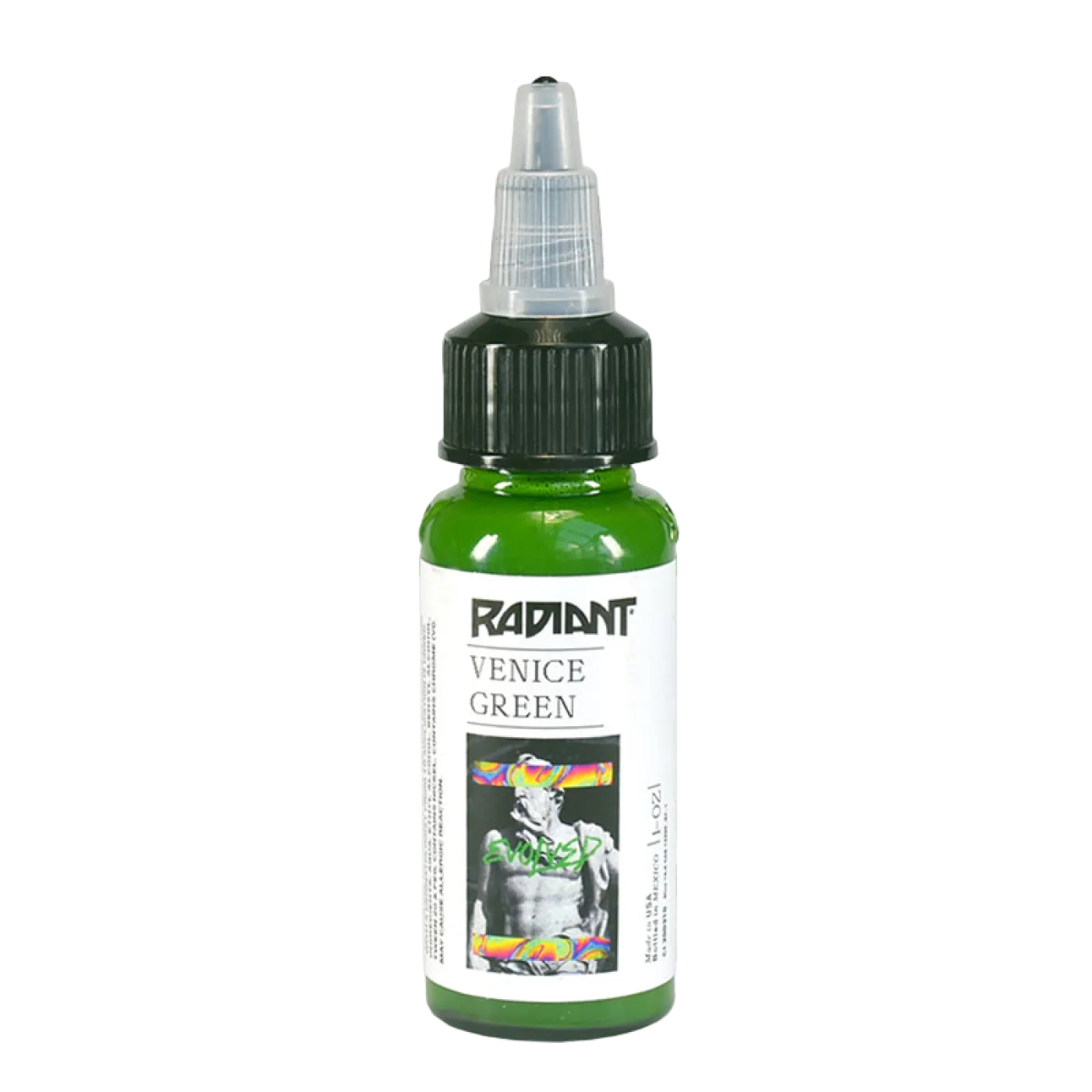 Radiant Evolved Colors са цветове за татуировки, разработени с известни татуисти от цял ​​свят. Благодарение на богатия ни опит и най-новите технологии в тази област, са създадени мастила за татуировки, изработени от чист хомогенизиран пигмент, които са лесни за нанасяне, дълготрайни и ярки. Линията EVOLVED е в съответствие с регламента TATTOO REACH 2023.